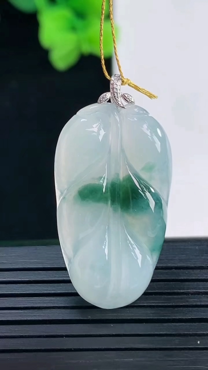 天然A货翡翠18K金飘花金枝玉叶 叶子吊坠尺寸34.2-17.1-4.3重量:4.47g 4月8日