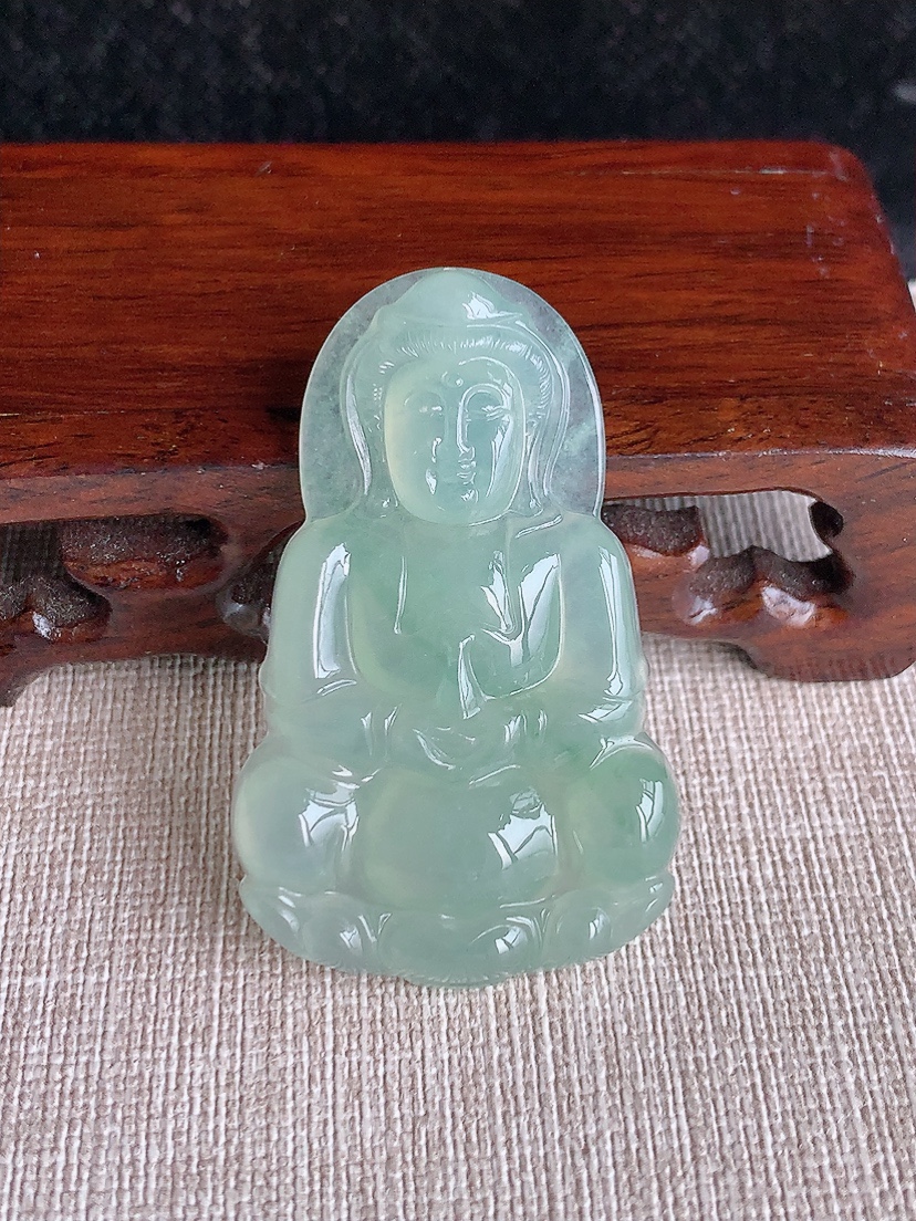 天然A货翡翠晴水正装观音吊坠 尺寸49.2-30.7-6mm 重量14.88g 0407