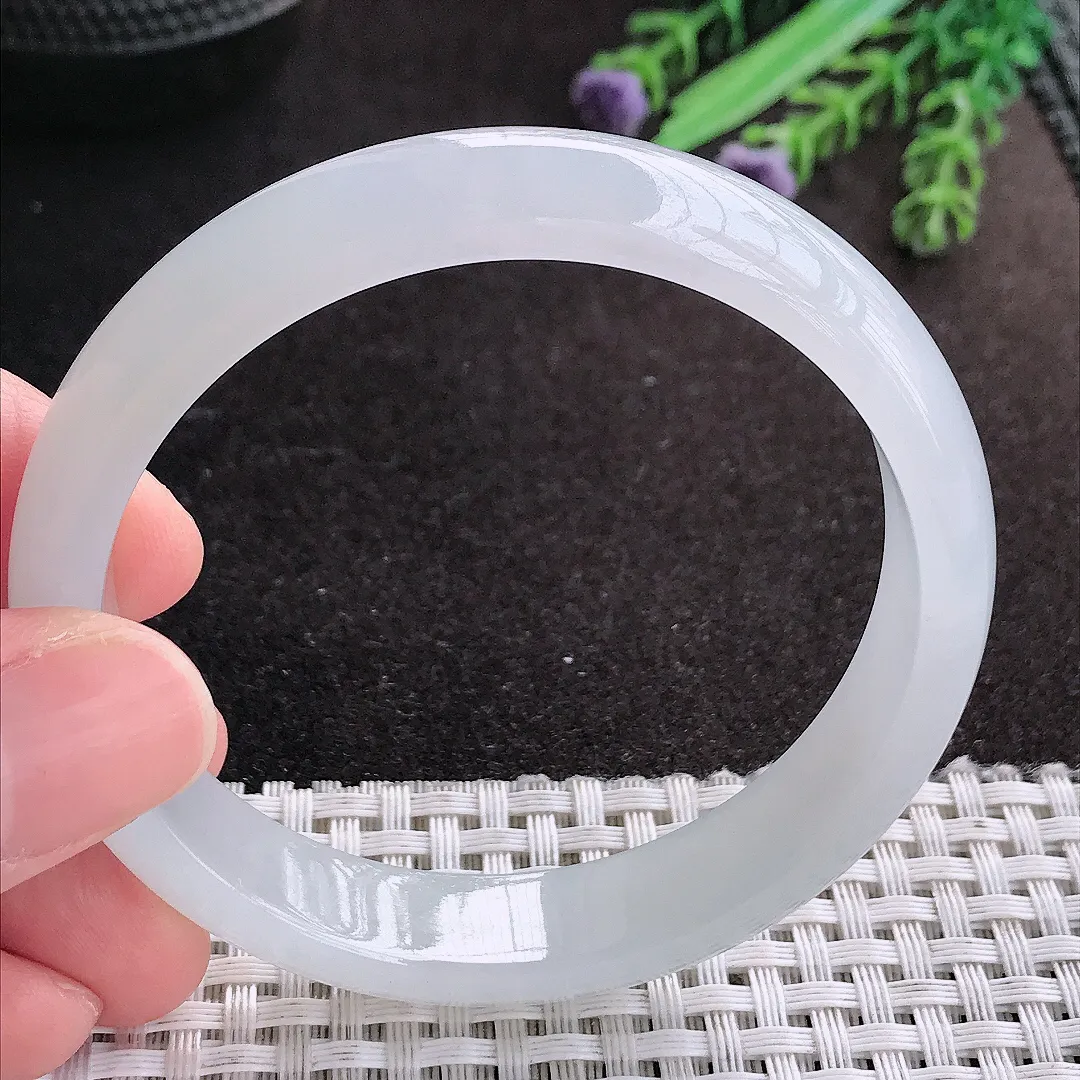 天然A货翡翠56.5/12/6.6老坑冰纯起胶白月光手镯宽边玉手镯