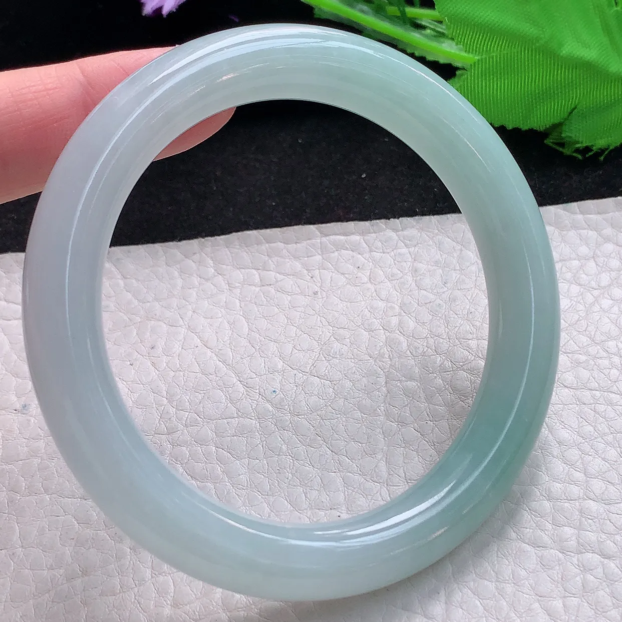 nr大圈口59.5*11*10.3美人镯 缅甸翡翠A货蓝韵圆条玉手镯玉手环