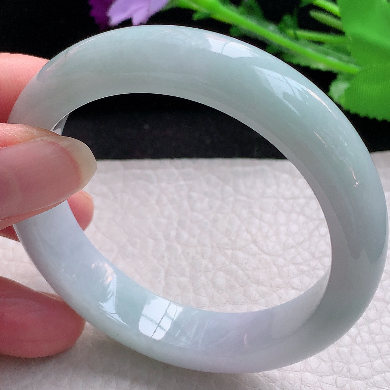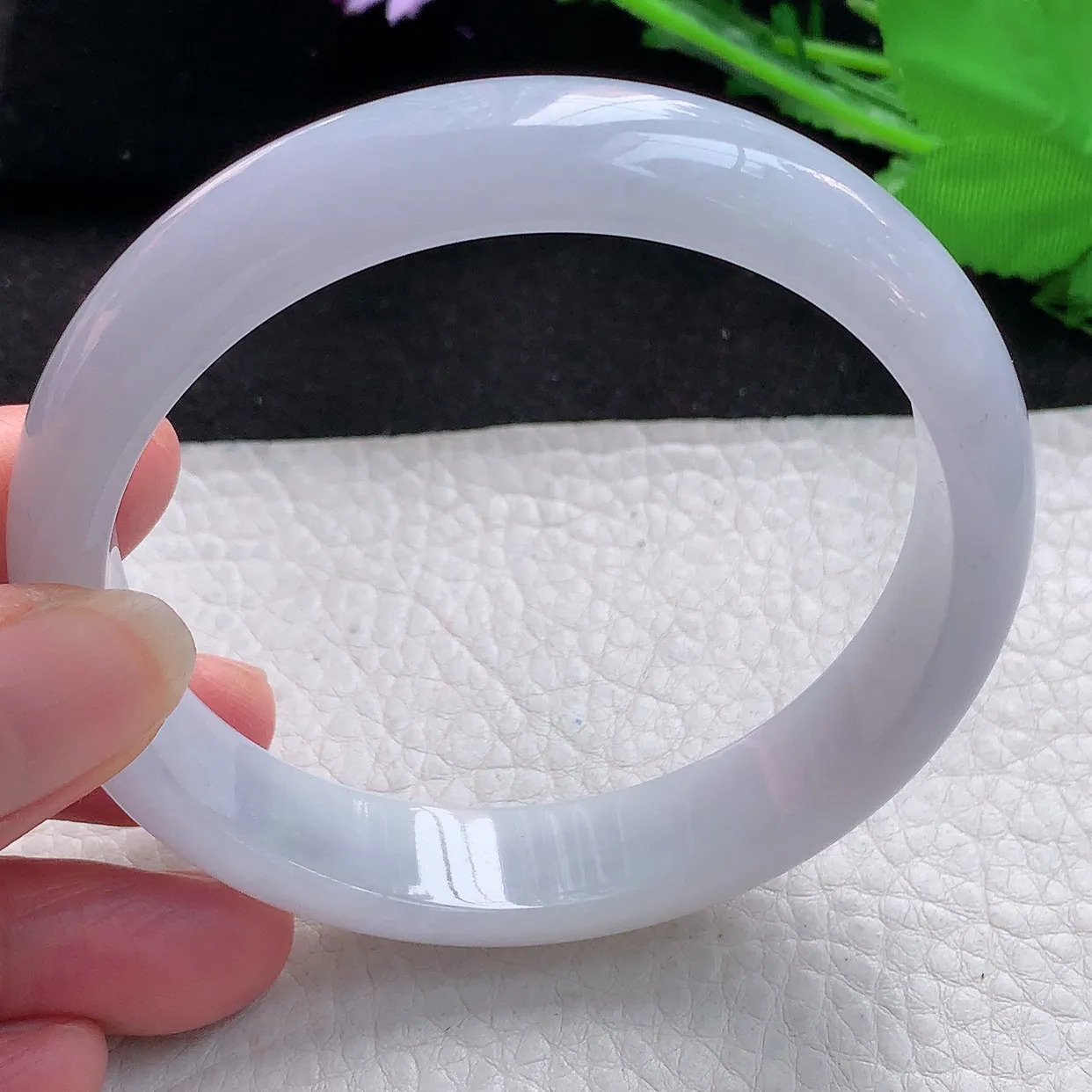nr大圈口61.5*13.5*7.5平安镯 缅甸翡翠A货淡紫底宽边玉手镯玉手环