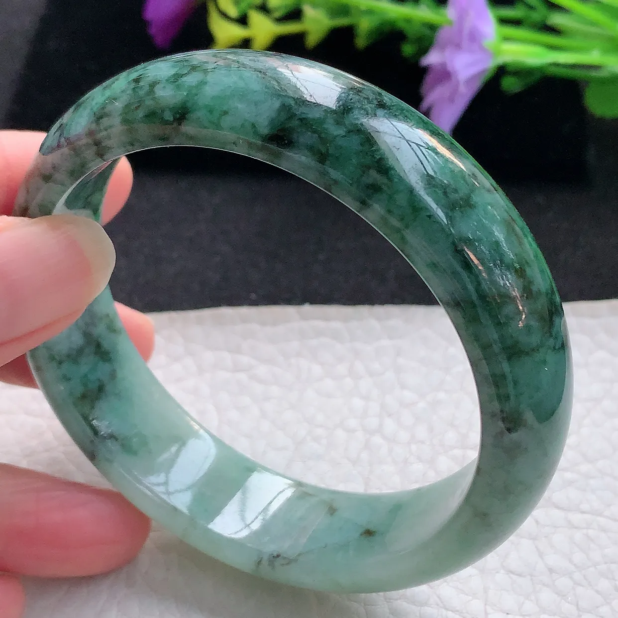 n大圈口59*17*8.5轮胎镯 天然翡翠A货手镯飘花宽边正圈平安镯