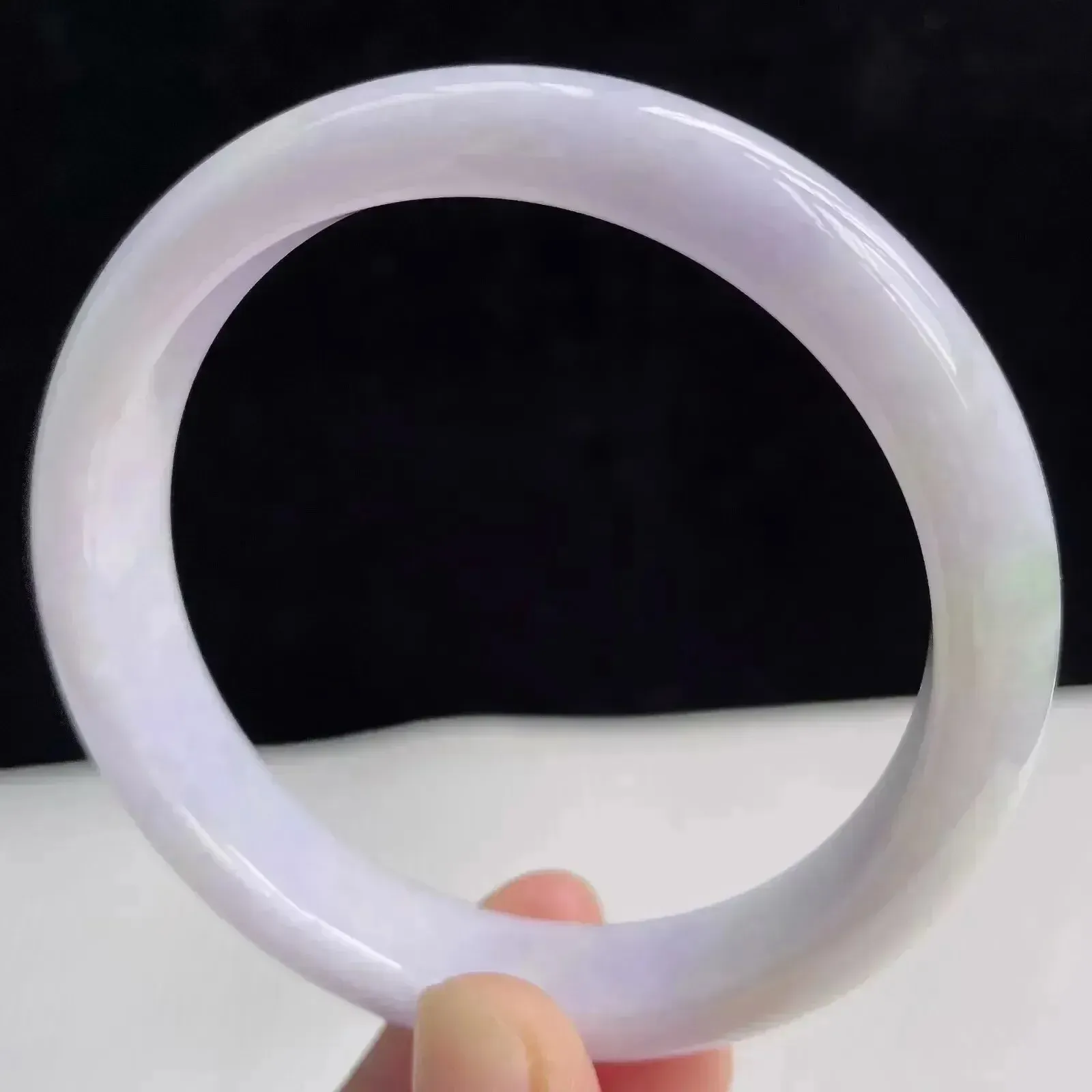 实拍A货翡翠62.8/12/9.6老坑冰润水灵紫罗兰手镯大圈口宽边玉镯手环