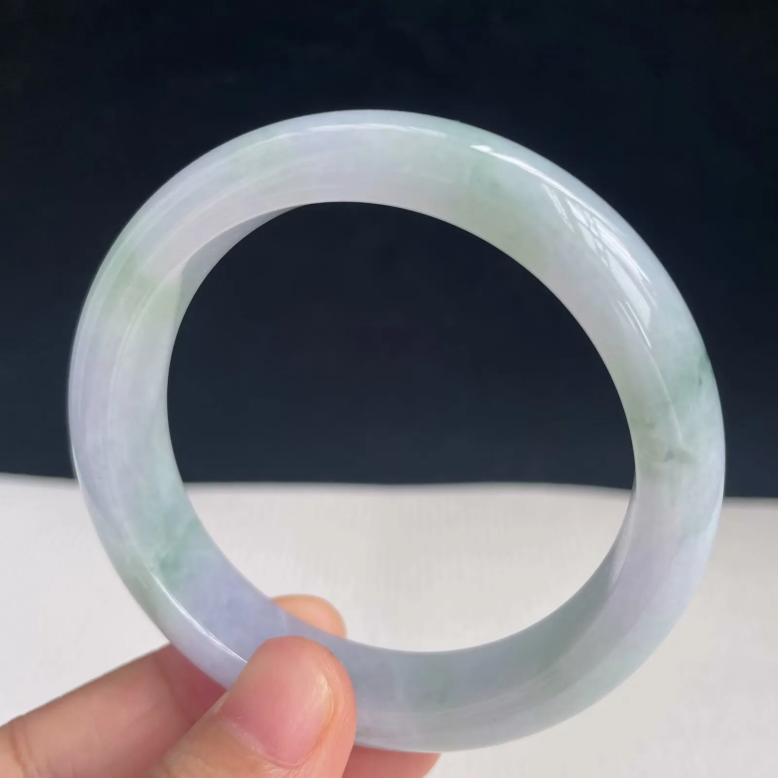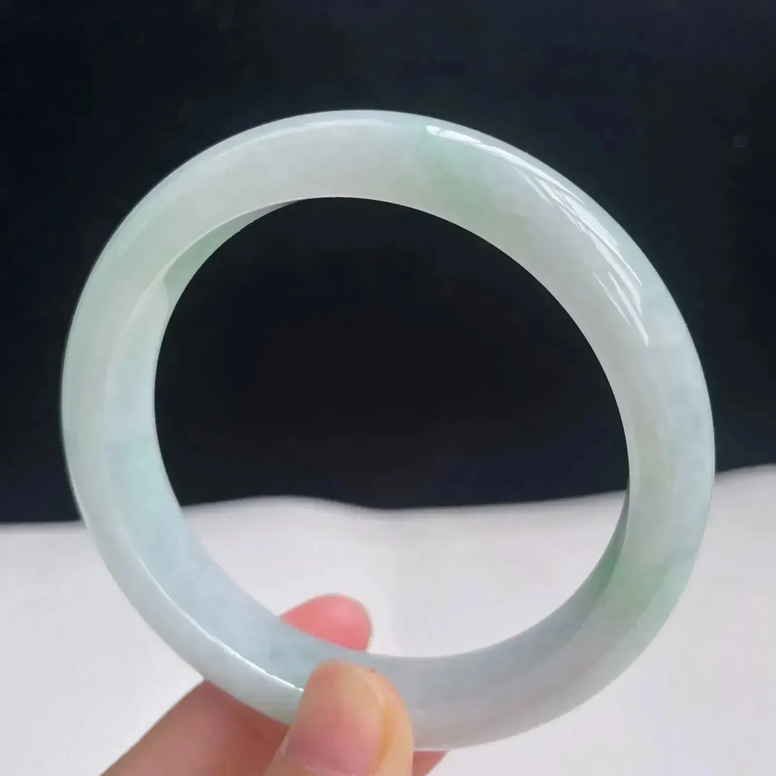 实拍A货翡翠53.5/12.1/9.2老坑秀气冰润飘绿手镯宽边翡翠玉镯女款