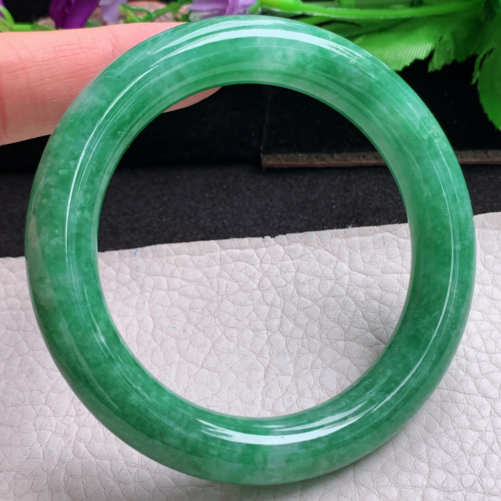 ll实拍59*13.3*8平安镯 天然翡翠a货手镯胶感飘绿正圈玉镯子