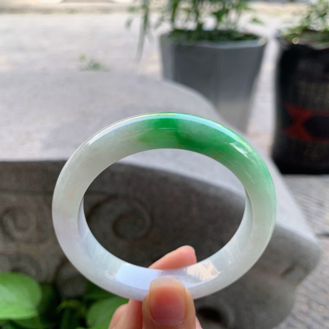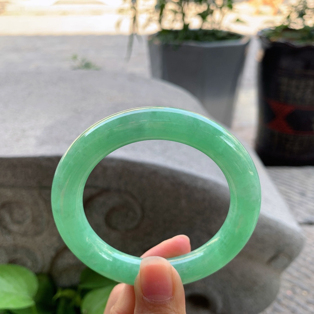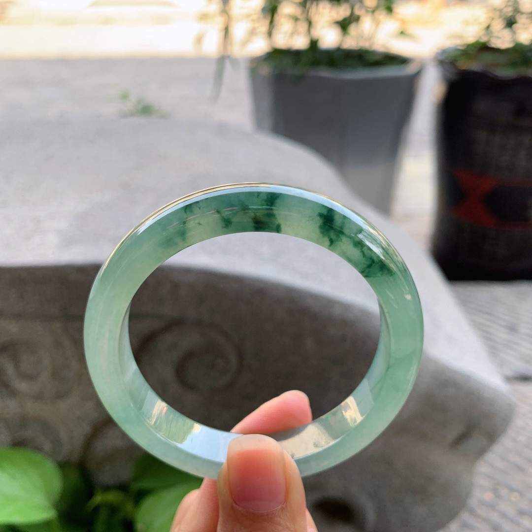 A货天然翡翠冰糯种飘花手镯59圈重量52.54 4月25日