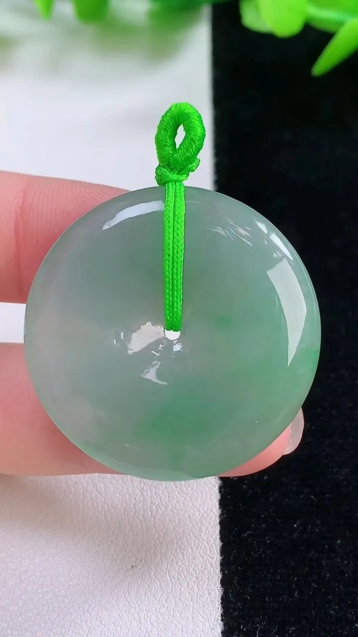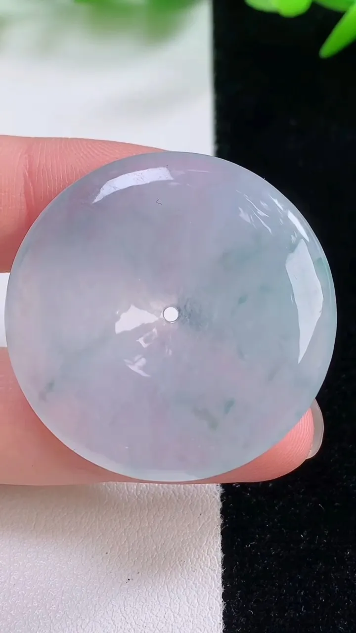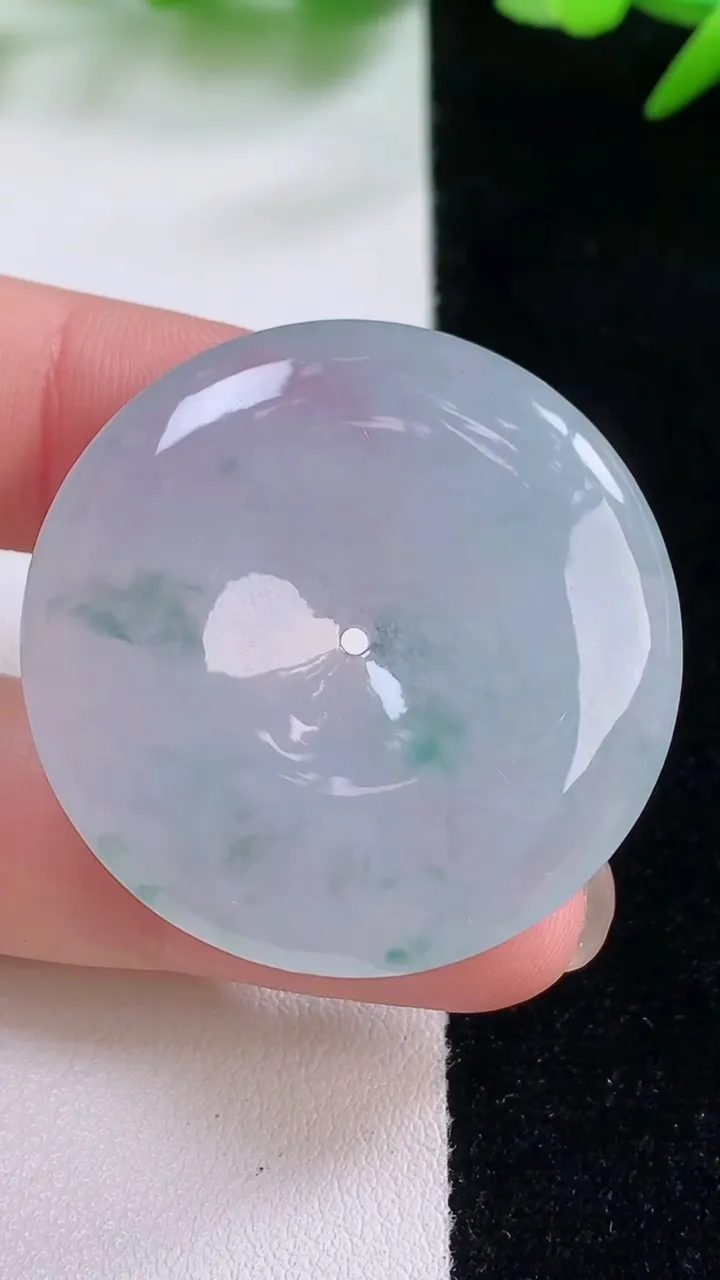 天然A货翡翠冰种飘花平安扣吊坠,尺寸35.3-5.3,重量:15.48g 11月30日