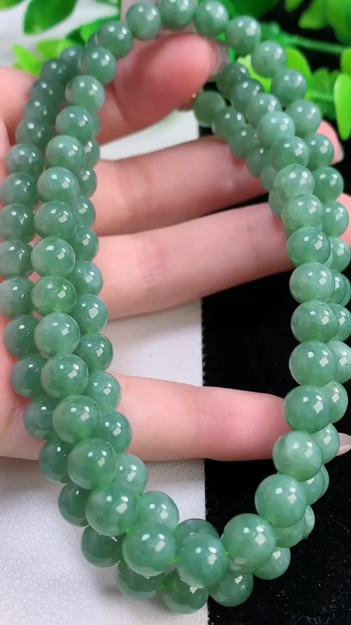 天然A货翡翠圆珠项链,尺寸7.2-108颗,重量:66.88g 11月30日