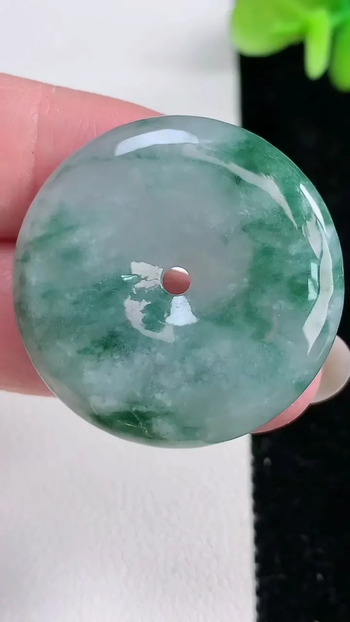 天然A货翡翠飘花平安扣吊坠,尺寸32.4-5.3,重:12.07g 12月14日