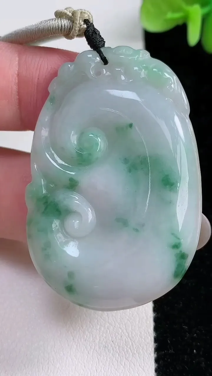 天然A货翡翠飘花如意吊坠,尺寸49-33.3-5,重:18.61g 12月14日