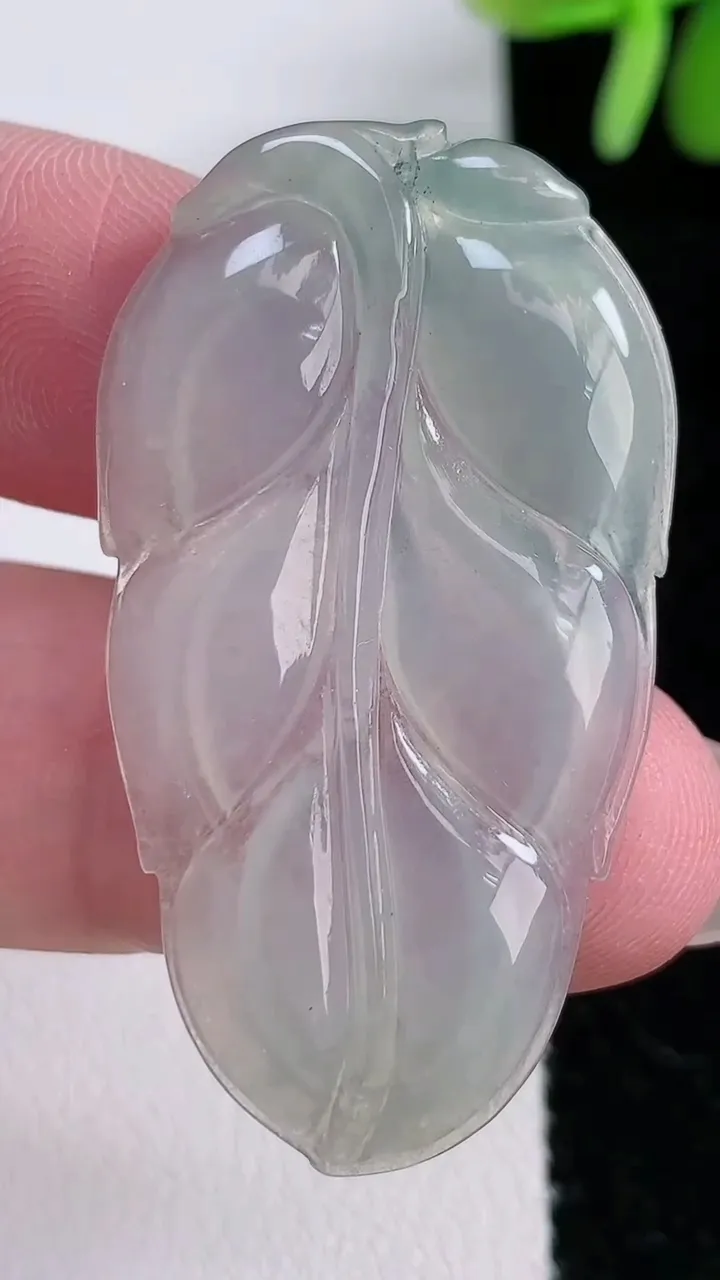 天然A货翡翠金枝玉叶 叶子吊坠,尺寸44-20.6-4,重:6.82g 12月14日