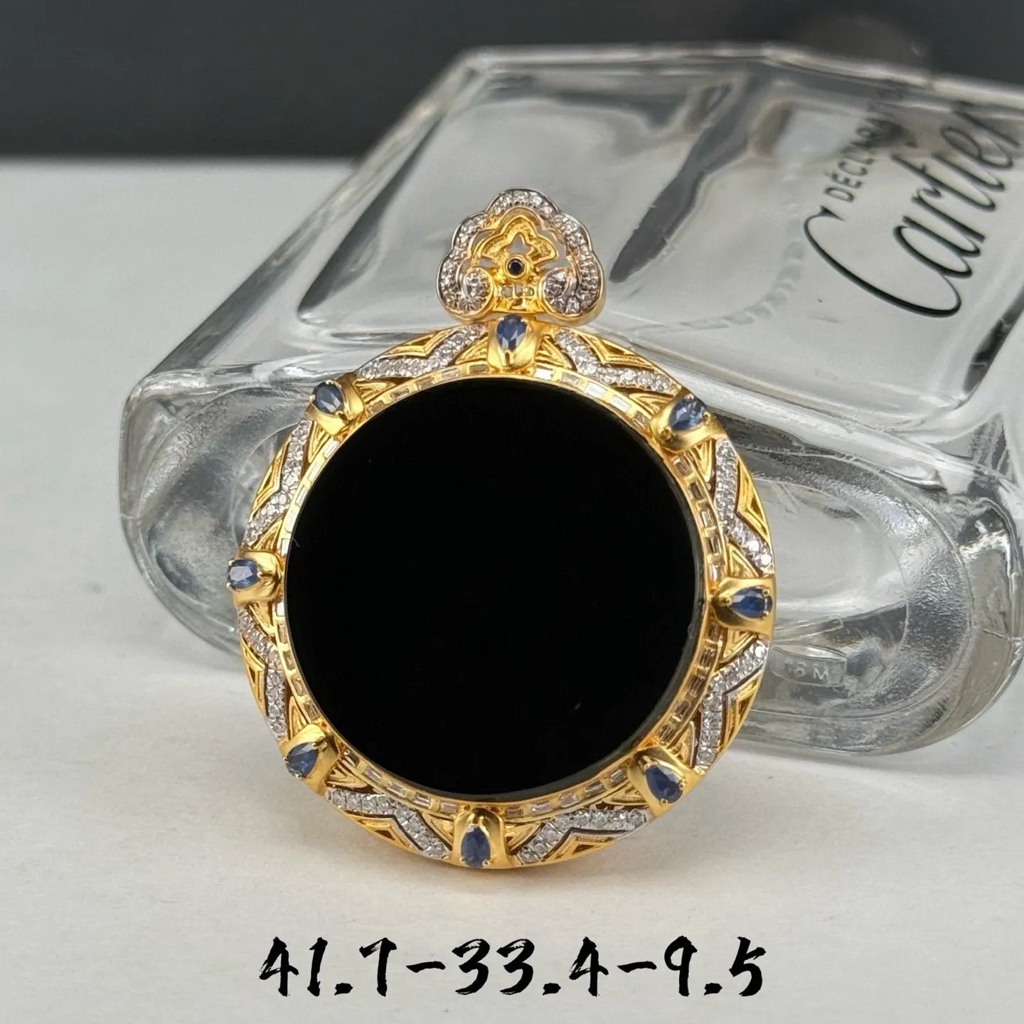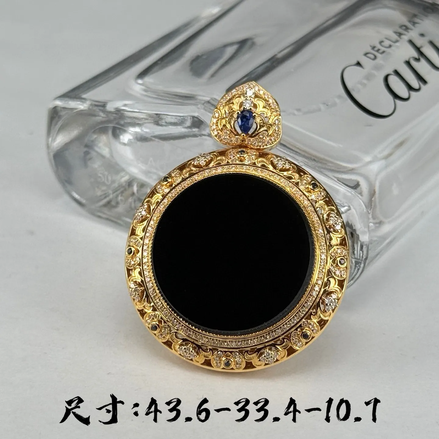 精品18k豪镶墨翠圆牌吊坠 种好色正 黑度极好 打灯通透 油性十足 尺寸41.7