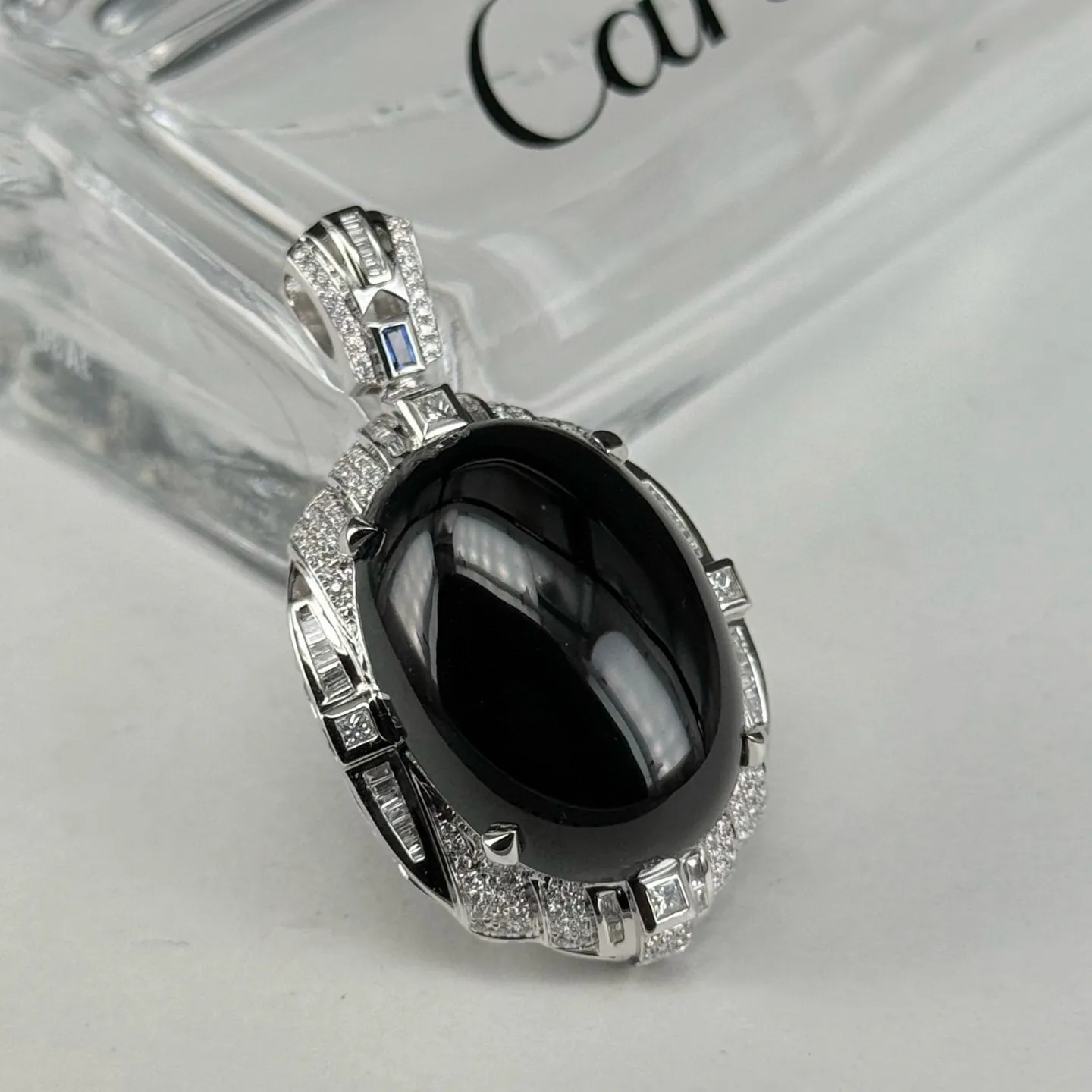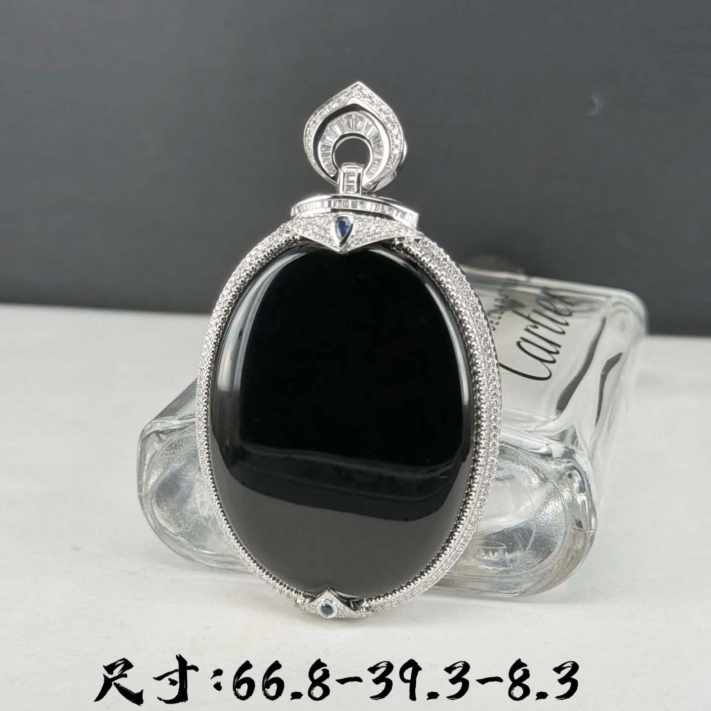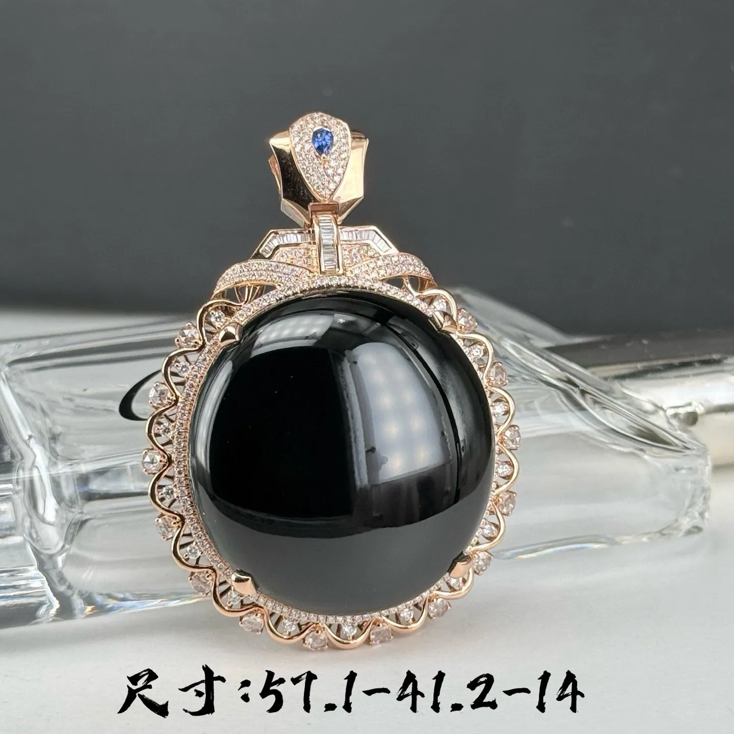 精品豪镶墨翠蛋面吊坠 种好色正 黑度极好 打灯通透 油性十足 尺寸45