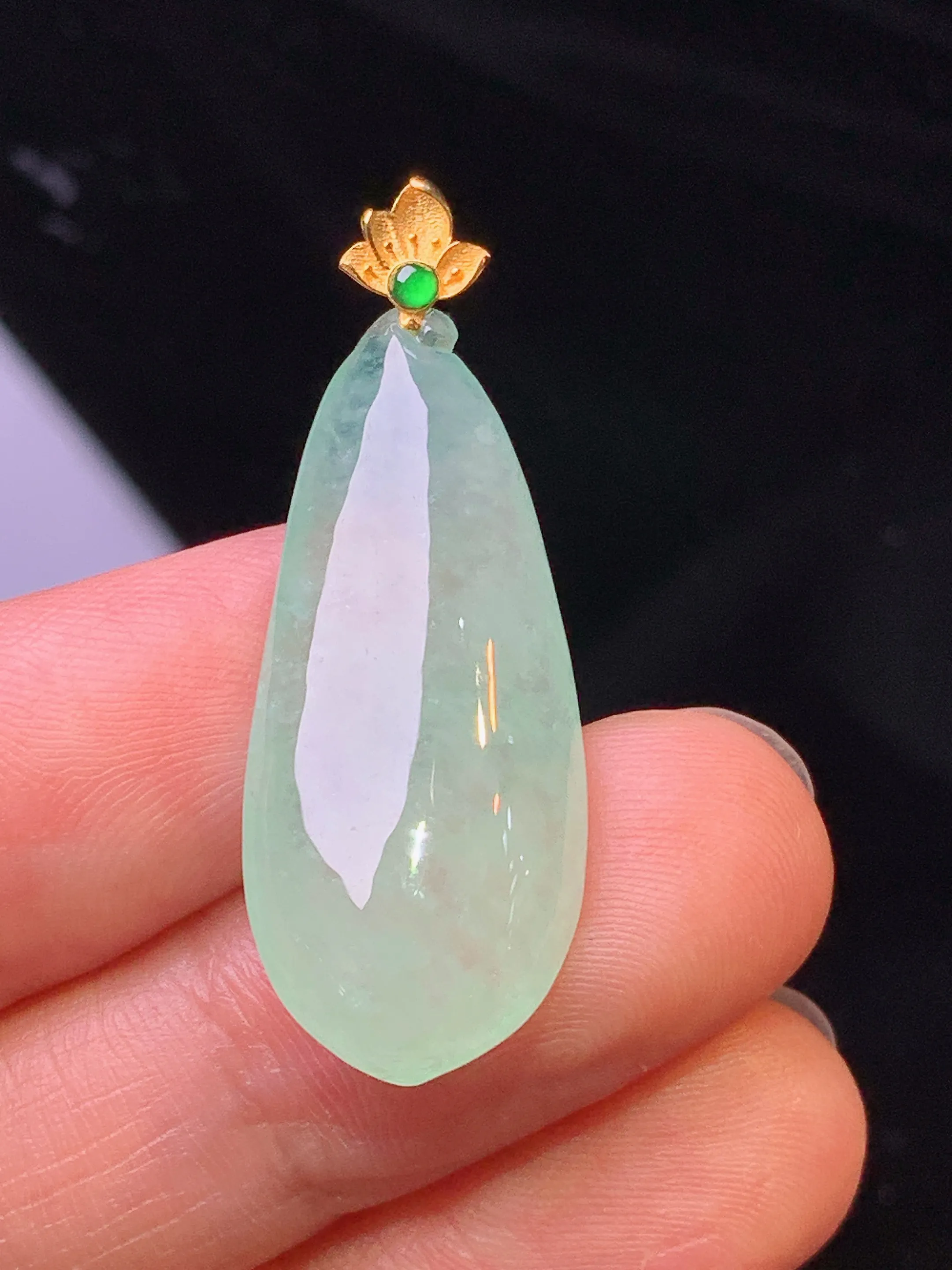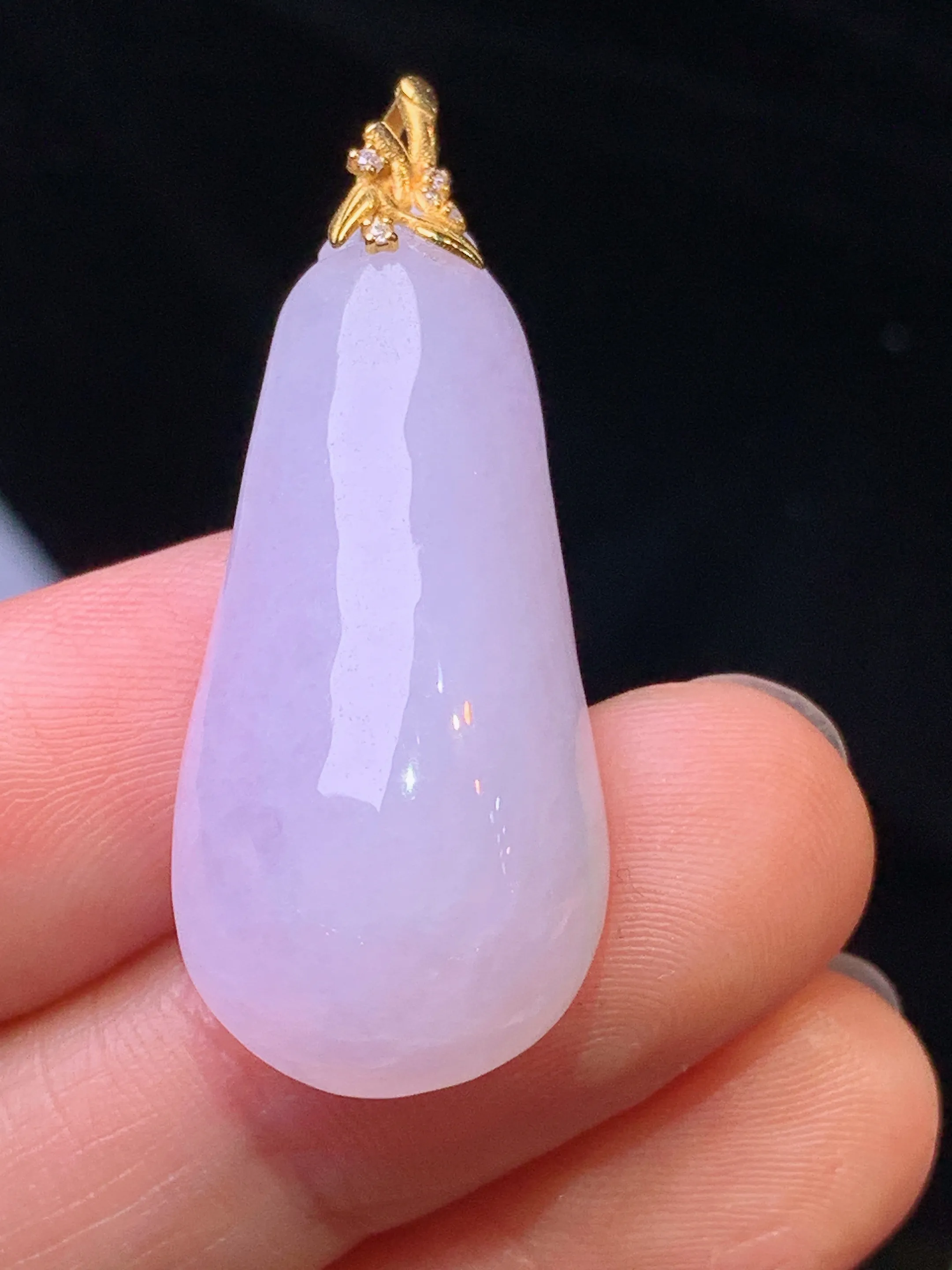 18k金钻镶嵌淡紫罗兰四季豆吊坠 玉质细腻 色泽清新艳丽 整体尺寸33*11.7*8