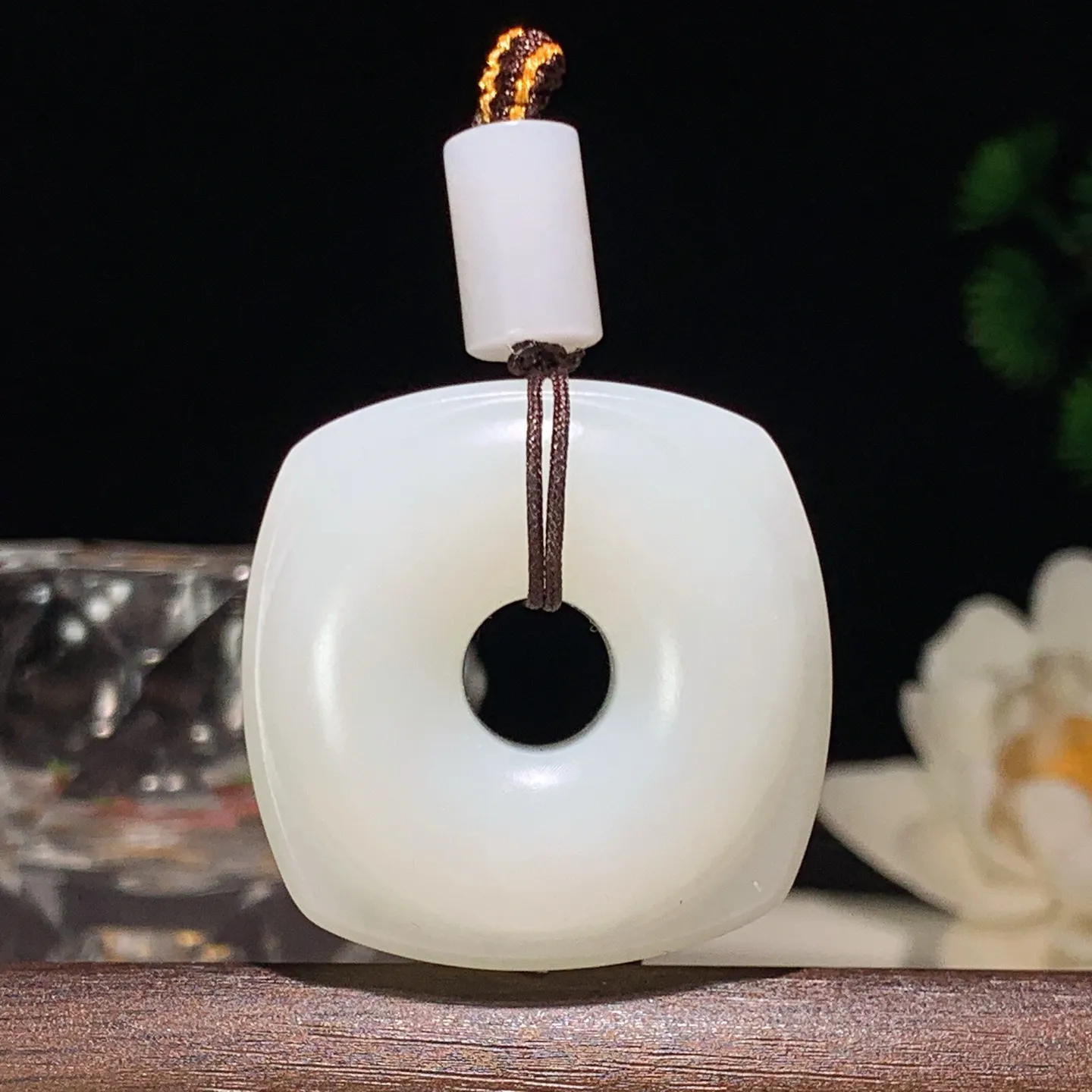 新疆和田玉白玉四方平安扣玉棕挂件 尺寸35/15重38克 玉质细腻油润。手推出油。佩戴高端典雅。lt