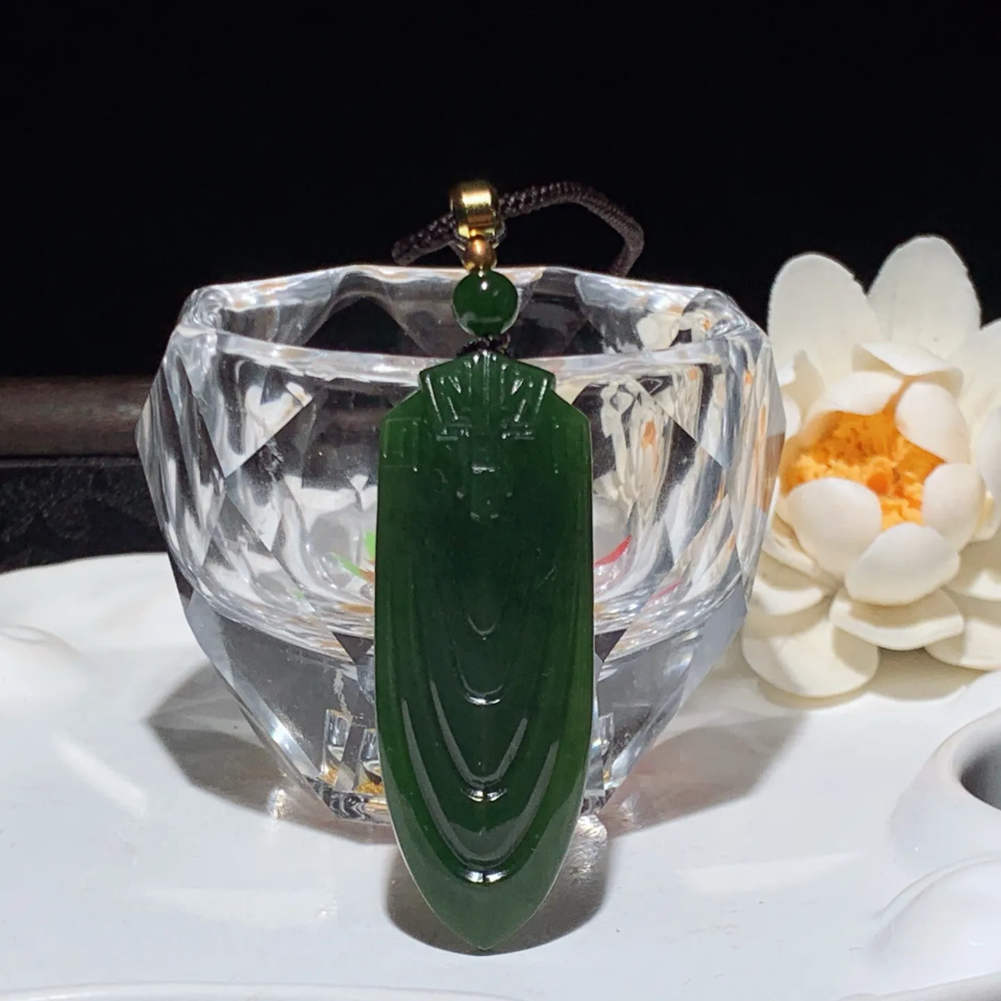 和田玉菠菜绿俄罗斯碧玉降魔杵挂件 尺寸51/19/7!玉质细腻油润。手推出油。佩戴高端典雅。lt26