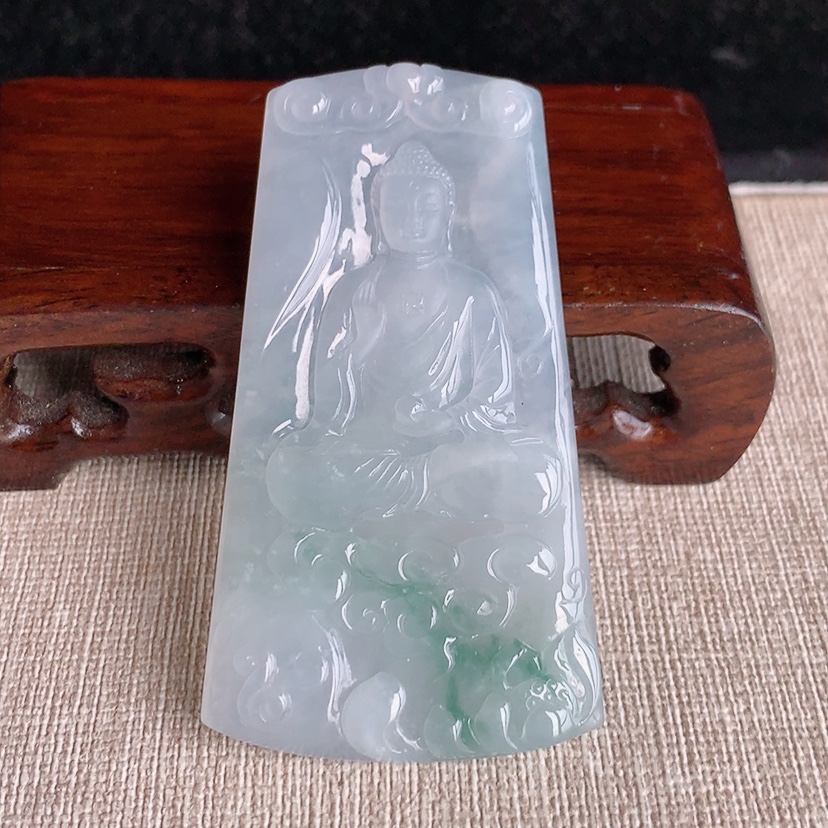 天然A货翡翠飘花大日如来吊坠 尺寸64.3-35.4-5.2mm 重量27.63g 0322
