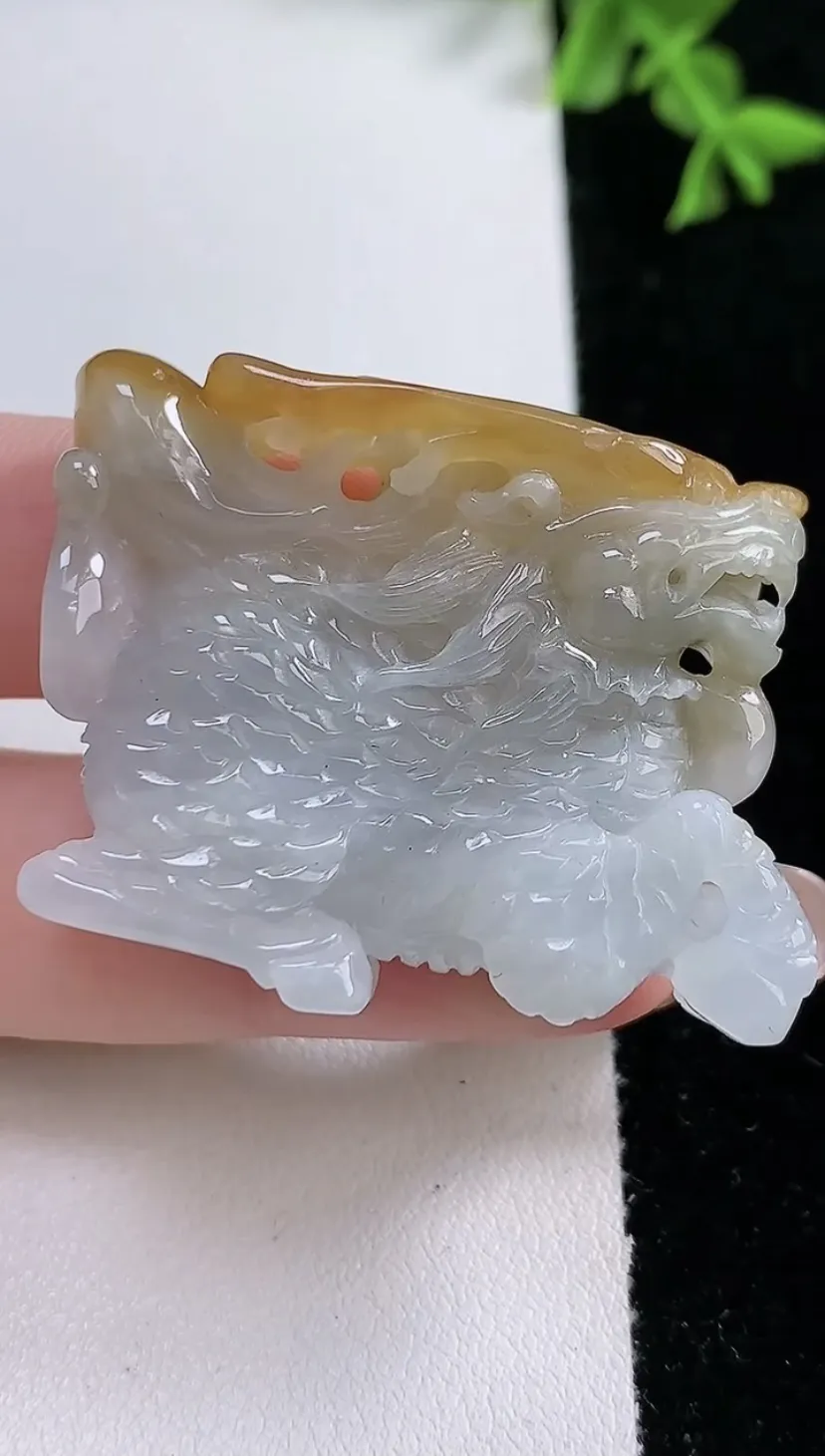 翡翠a货飘黄翡貔貅吊坠,尺寸40-32-9,重:23.99g