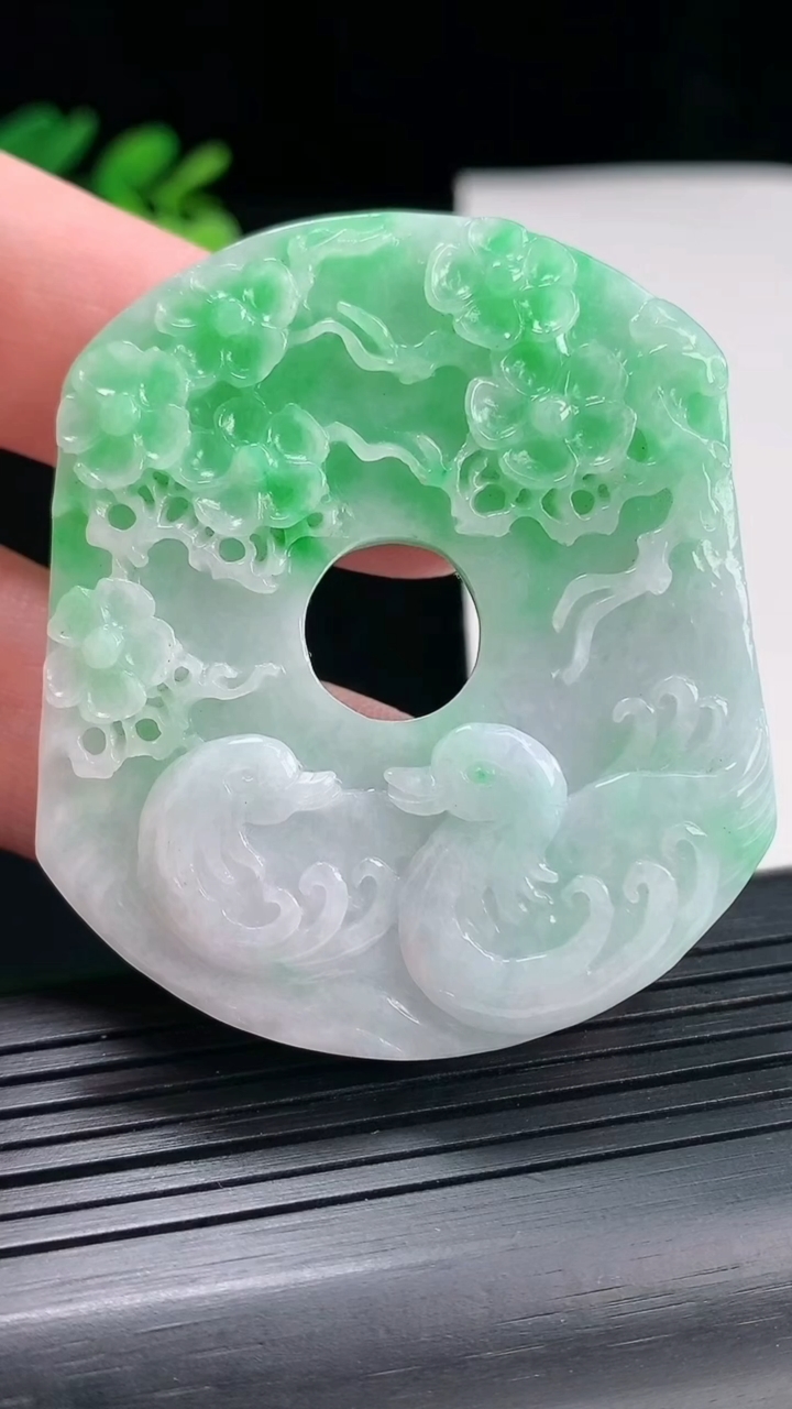 天然A货翡翠鸳鸯吊坠,尺寸53-46-6重量:29.48g 4月25日