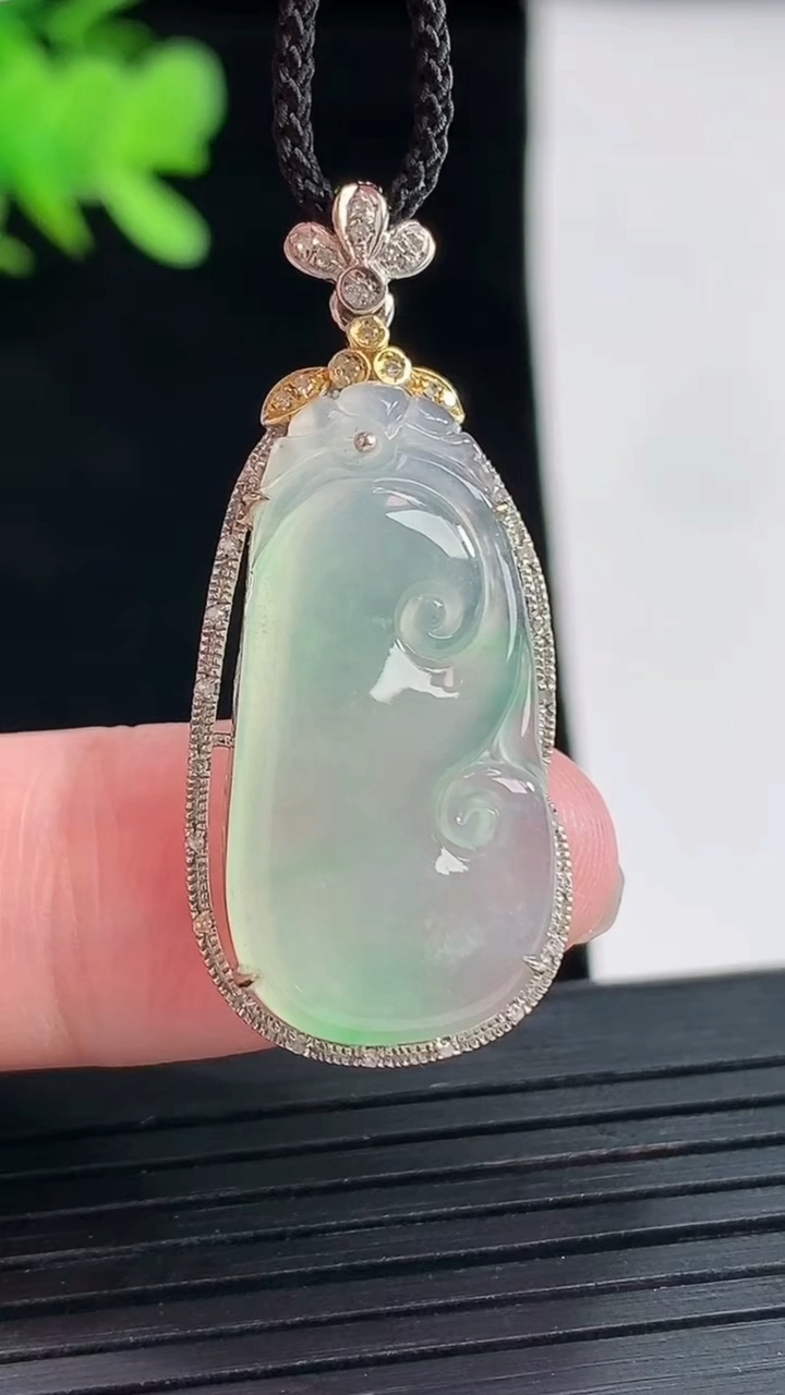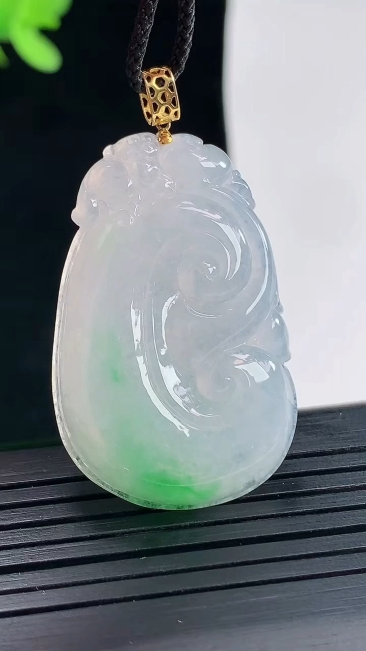 天然A货翡翠如意吊坠,尺寸35.8-23.6-5.2重量:10.00g 4月25日