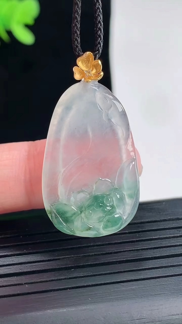 天然A货翡翠种飘花和和美美 荷叶鱼吊坠,尺寸30-19.5-5重量:5.47g 4月25日