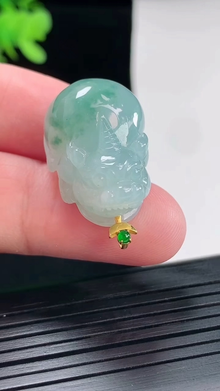 天然A货翡翠18k金飘花貔貅吊坠,尺寸25-17-12重量:10.76g 4月25日
