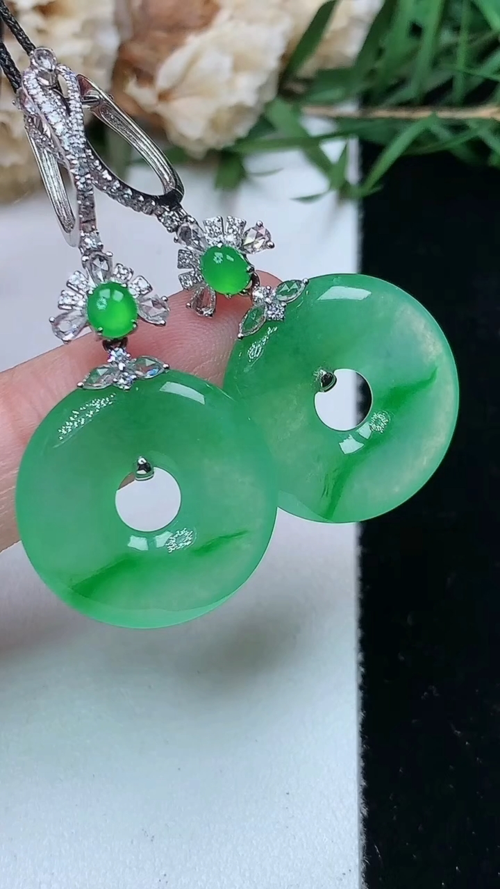 天然A货翡翠飘花平安扣吊坠,尺寸33-5.2重量:12.52g 4月25日