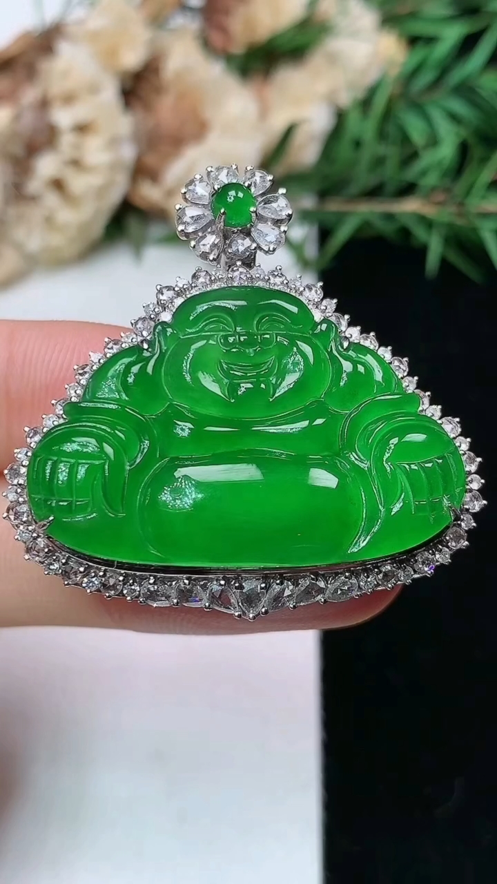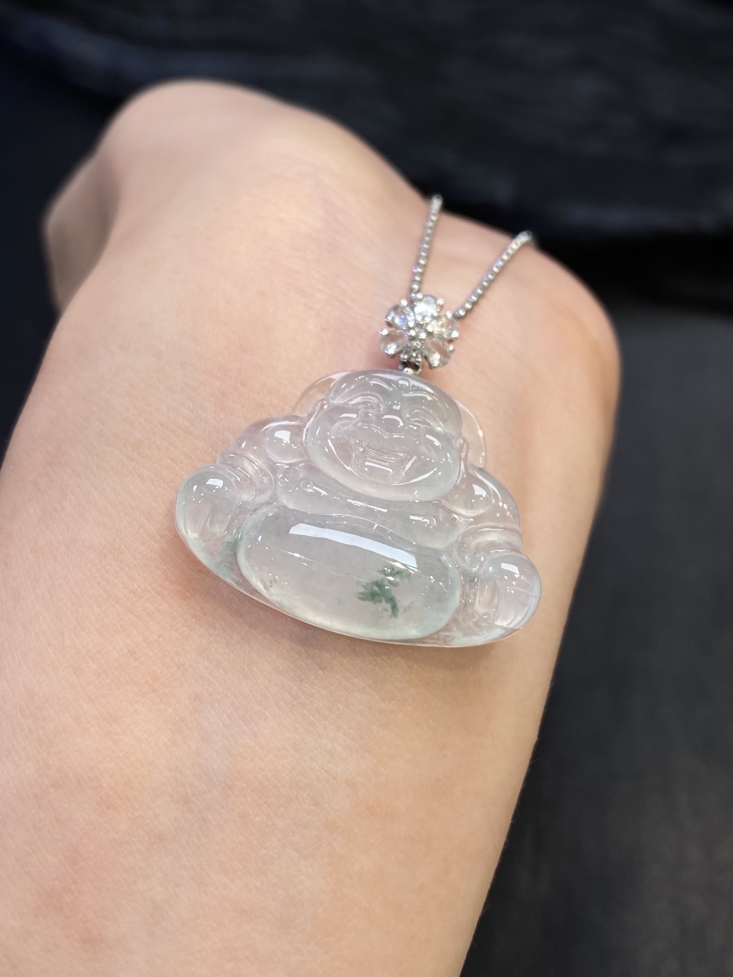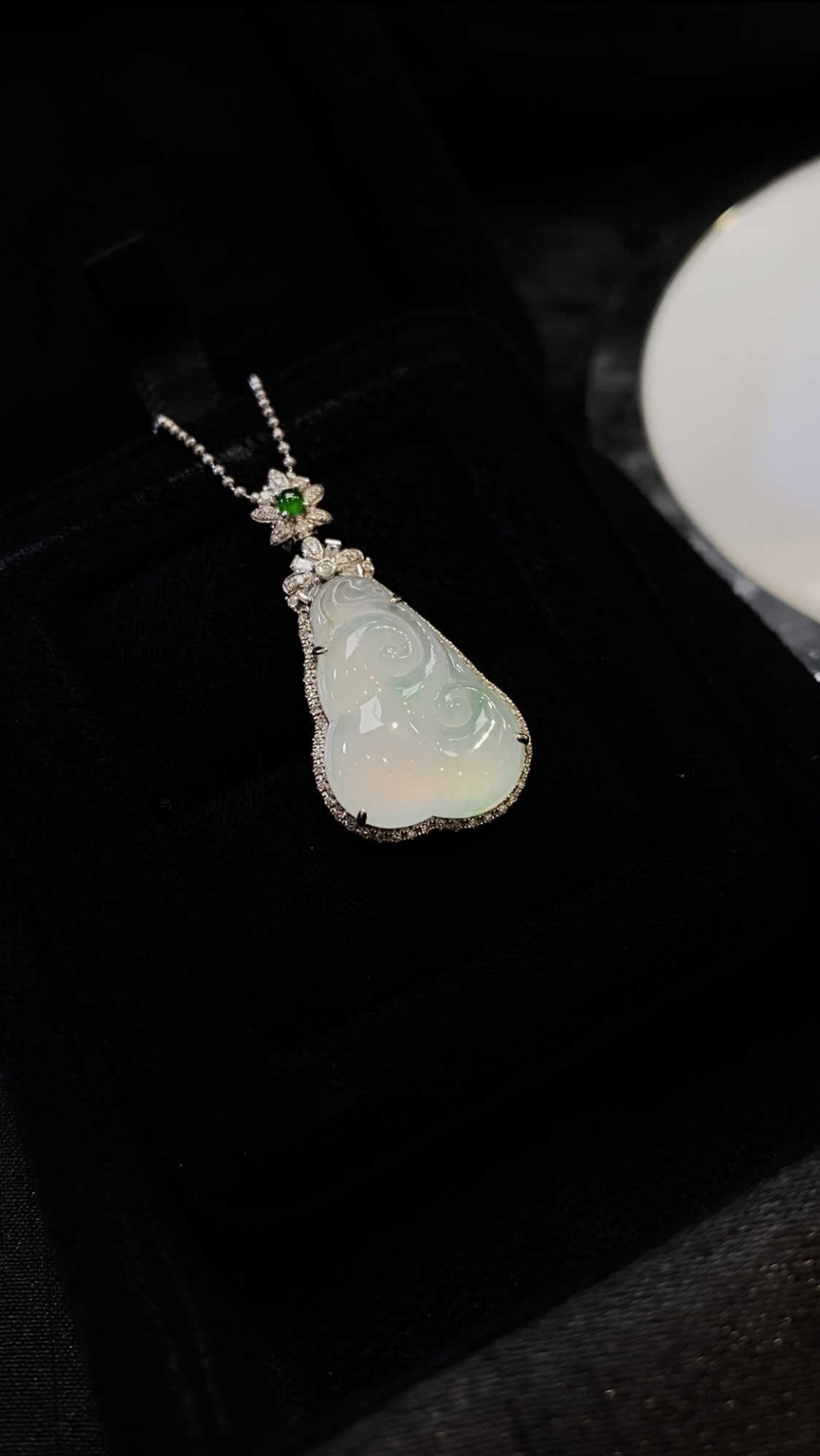 A货天然翡翠冰糯种飘绿荷花吊坠重量11.10 4月25日