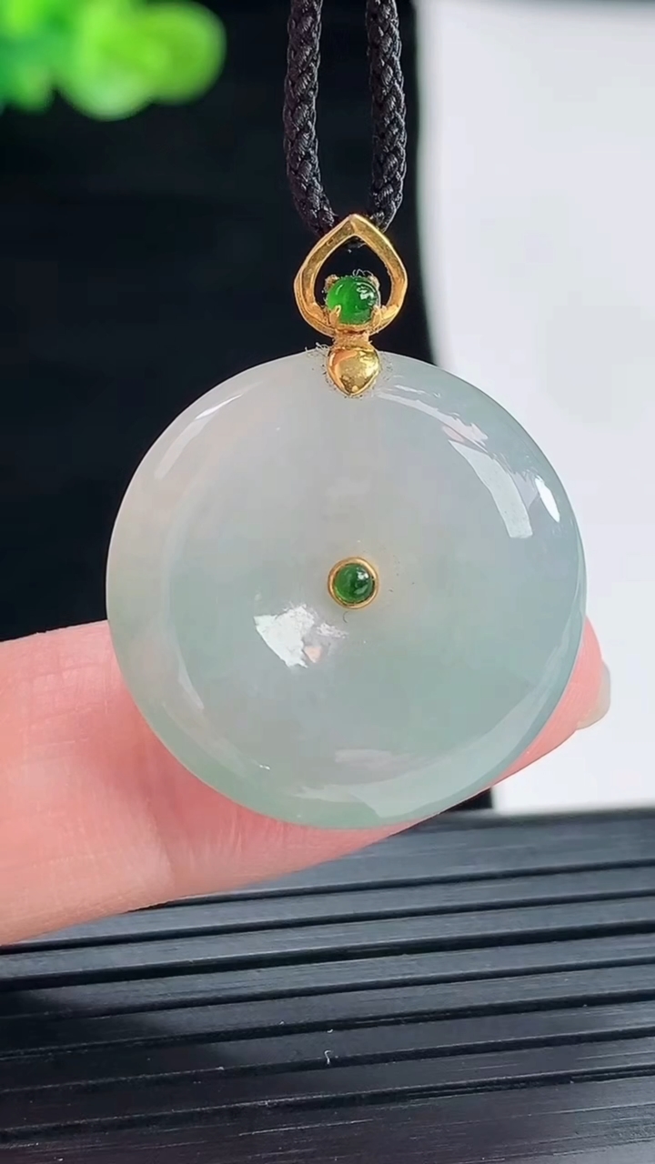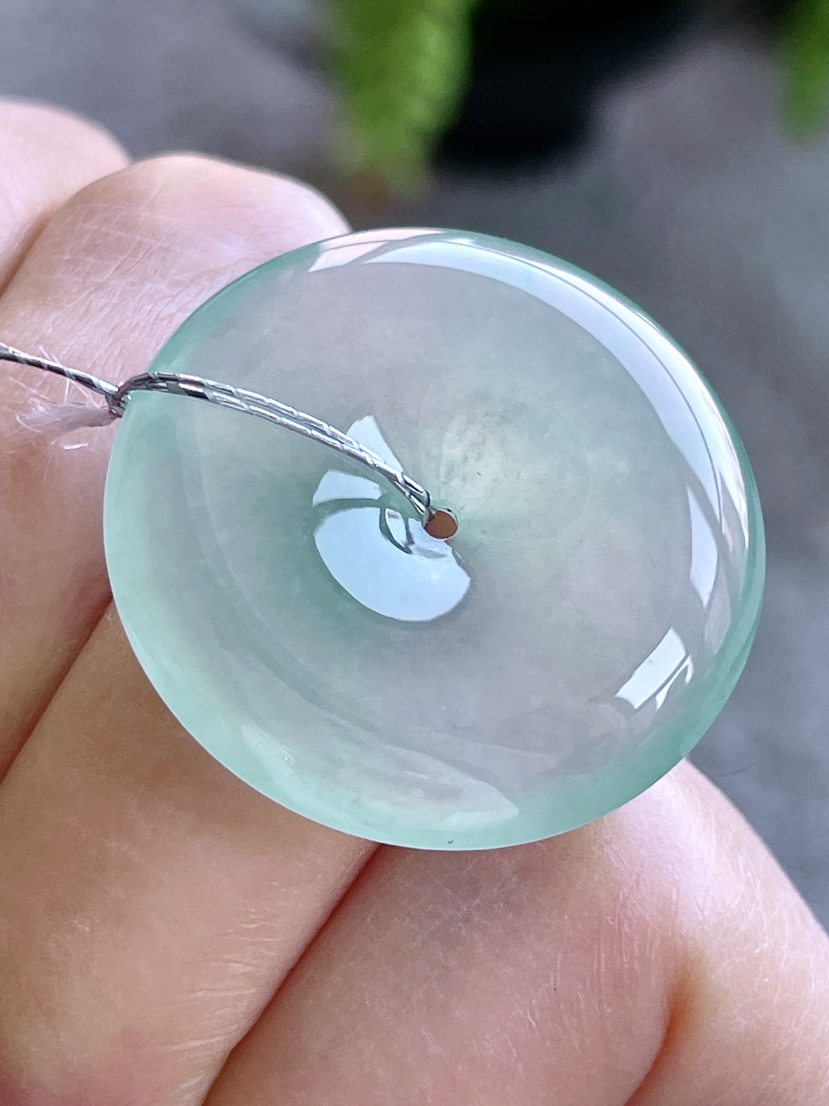 天然A货翡翠冰种飘花平安扣吊坠,尺寸26.6-4.5重量:6.50g 4月27日