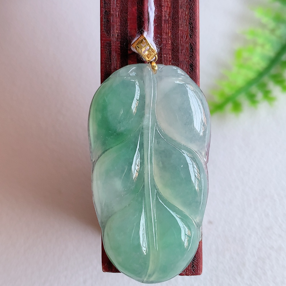18k金扣冰润飘花金枝玉叶翡翠吊坠 老种起胶感 飘花灵动 寓意“金枝玉叶,大业有成,一夜成名”
