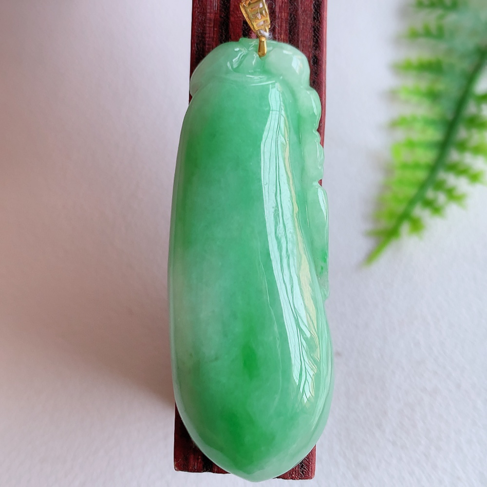 18k金扣冰润满绿福瓜翡翠吊坠,呱呱来财,福气满满的美好寓意,清新自然 沁人心脾,造型独特,清秀高