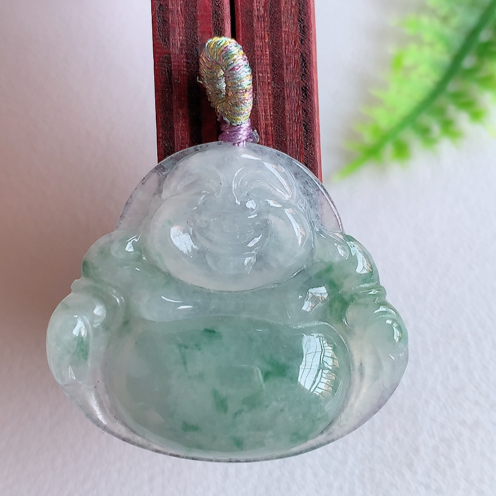 冰润飘花佛公挂件 玉质细腻 精雕弥勒佛,笑佛福耳垂肩,面相喜庆,开怀大笑,憨态可掬。惟妙惟肖,寓意