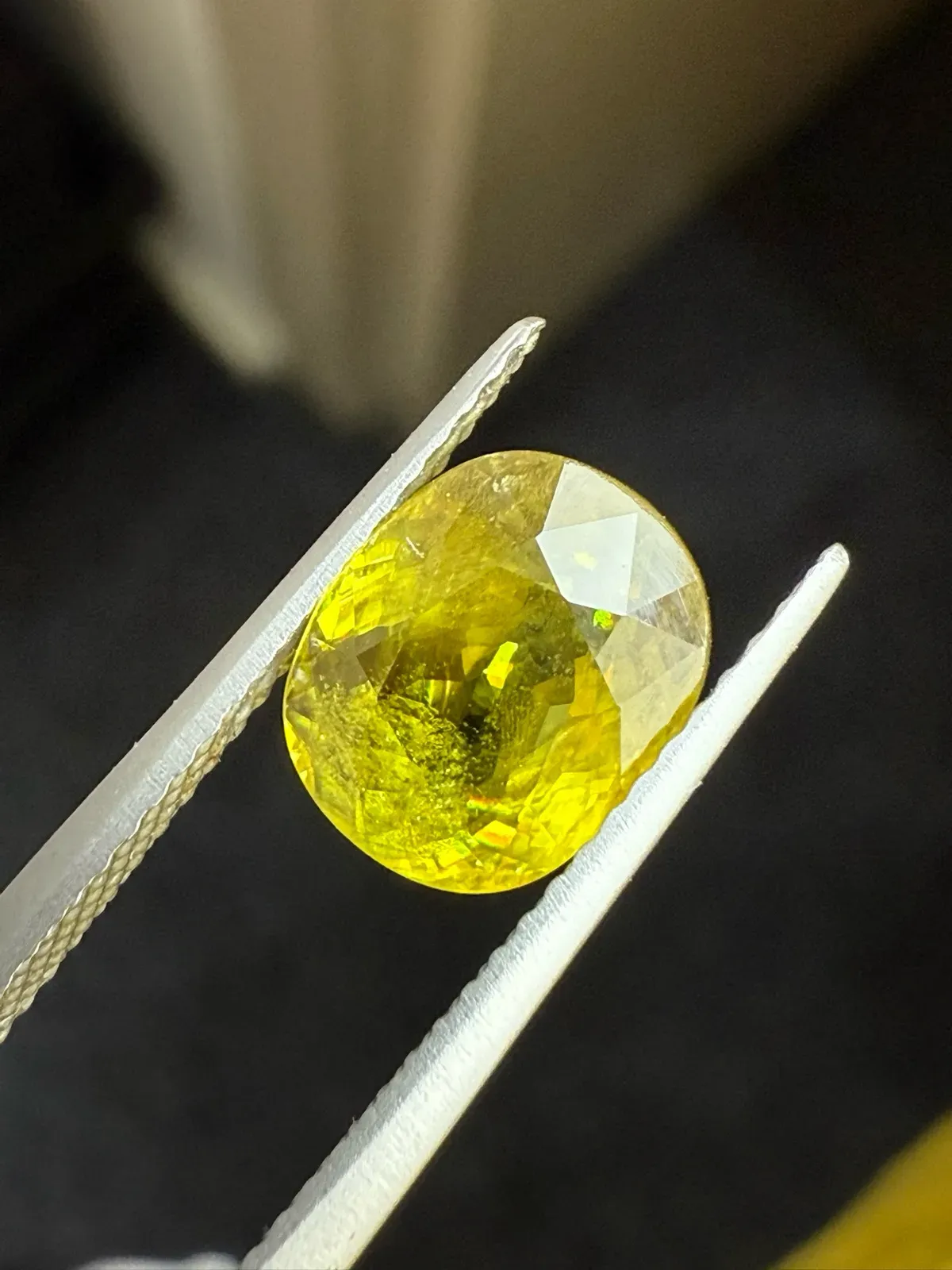 2.205克拉天然榍石戒面裸石,颜色超美,火彩超好,尺寸:8.8*7.2*4.3mm