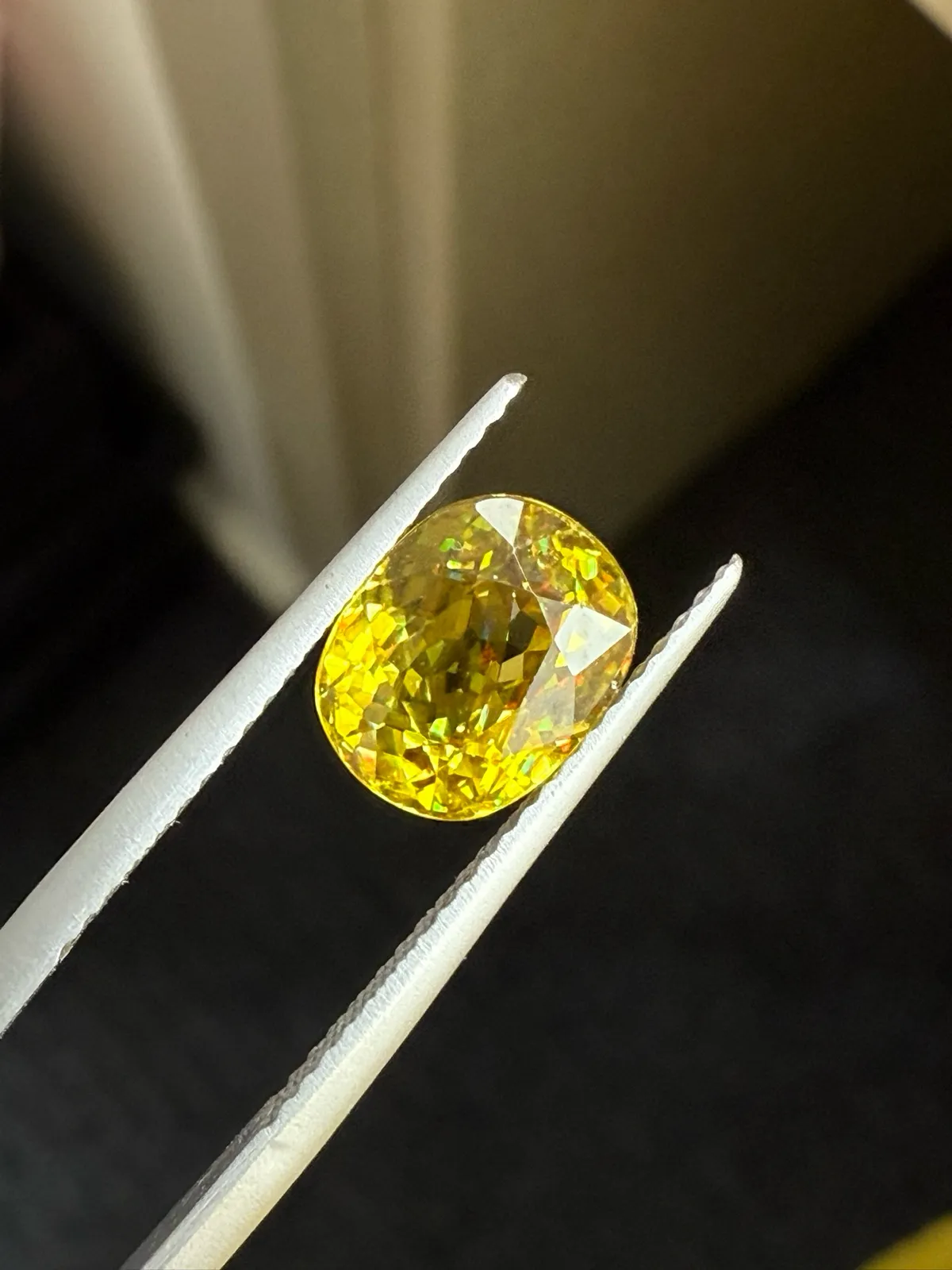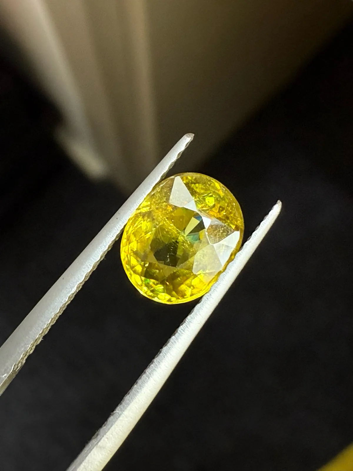 2.62克拉天然榍石戒面裸石,颜色超美,火彩超好,尺寸:8.9*7.3*4.6mm
