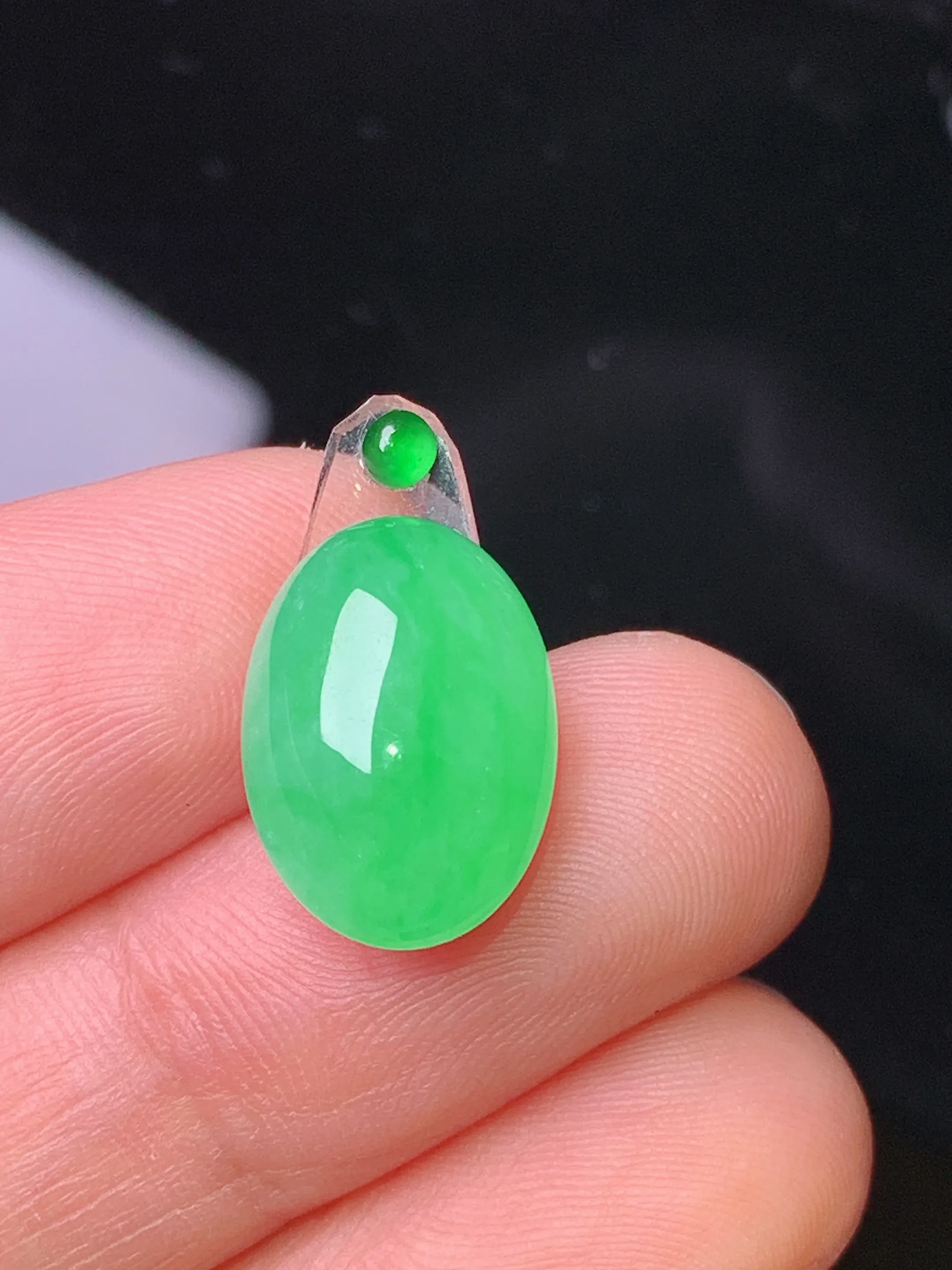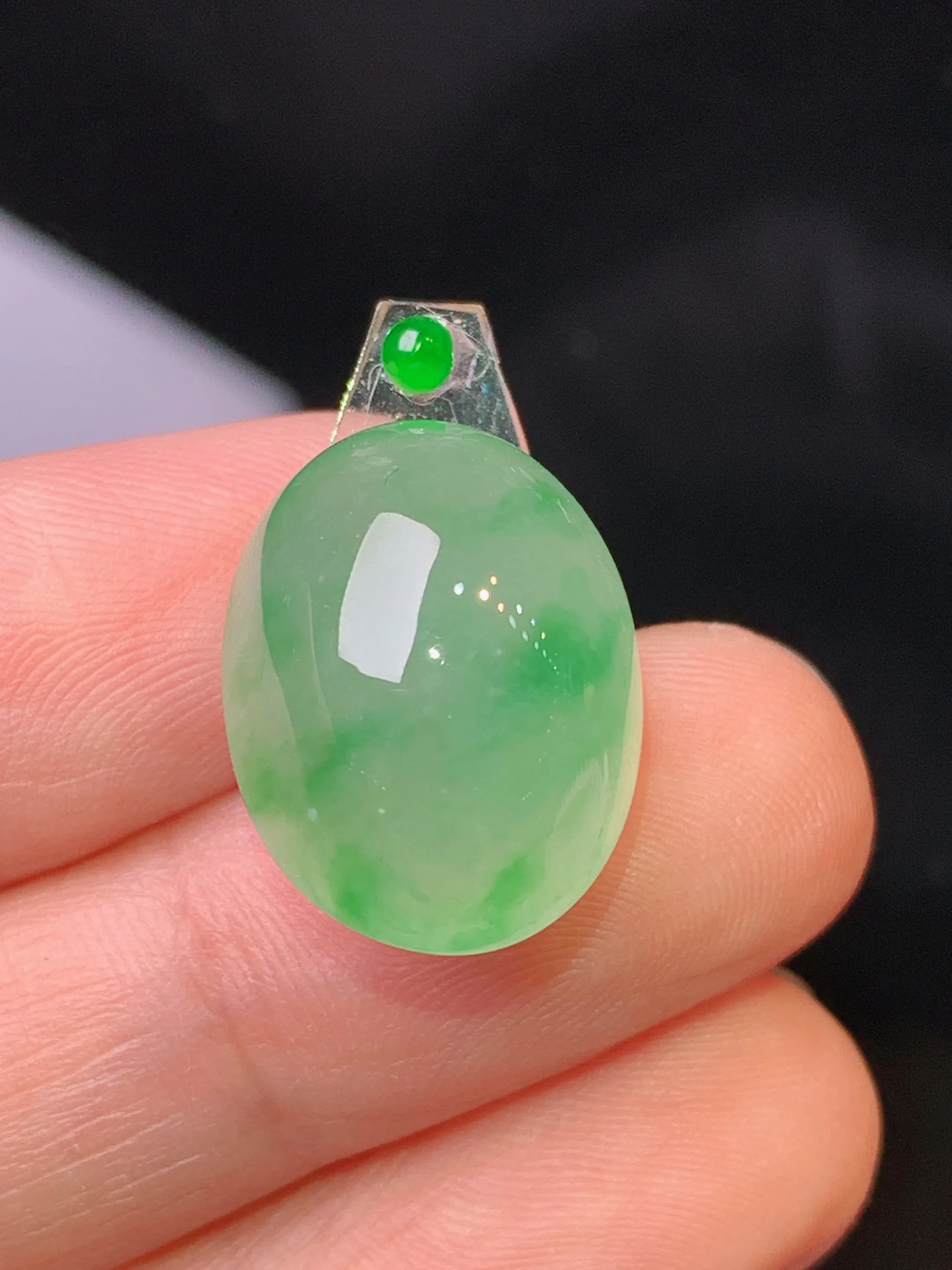 镶嵌款 飘绿蛋面吊坠 玉质细腻 色泽清新艳丽 整体尺寸18.3*13.7*11.5