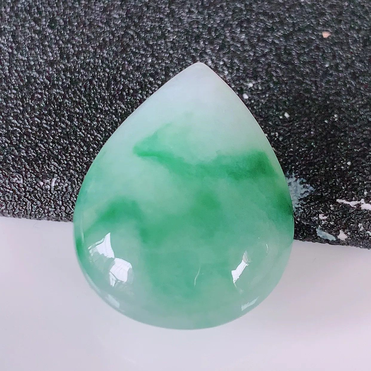 自然光实拍,冰飘花翡翠水滴戒面,蛋面,翠色灵动,玉质细腻,颜色漂亮,品相佳, 镶嵌更靓, 佩戴佳品!