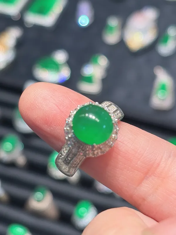 秒杀【超低价放漏】戒面裸石,翡翠冰透起光蛋面镶嵌件,种水好,底子干净,玉质细腻莹润,镶嵌后更美,尺寸:11.3*10.5*6.2mm,重1.09克