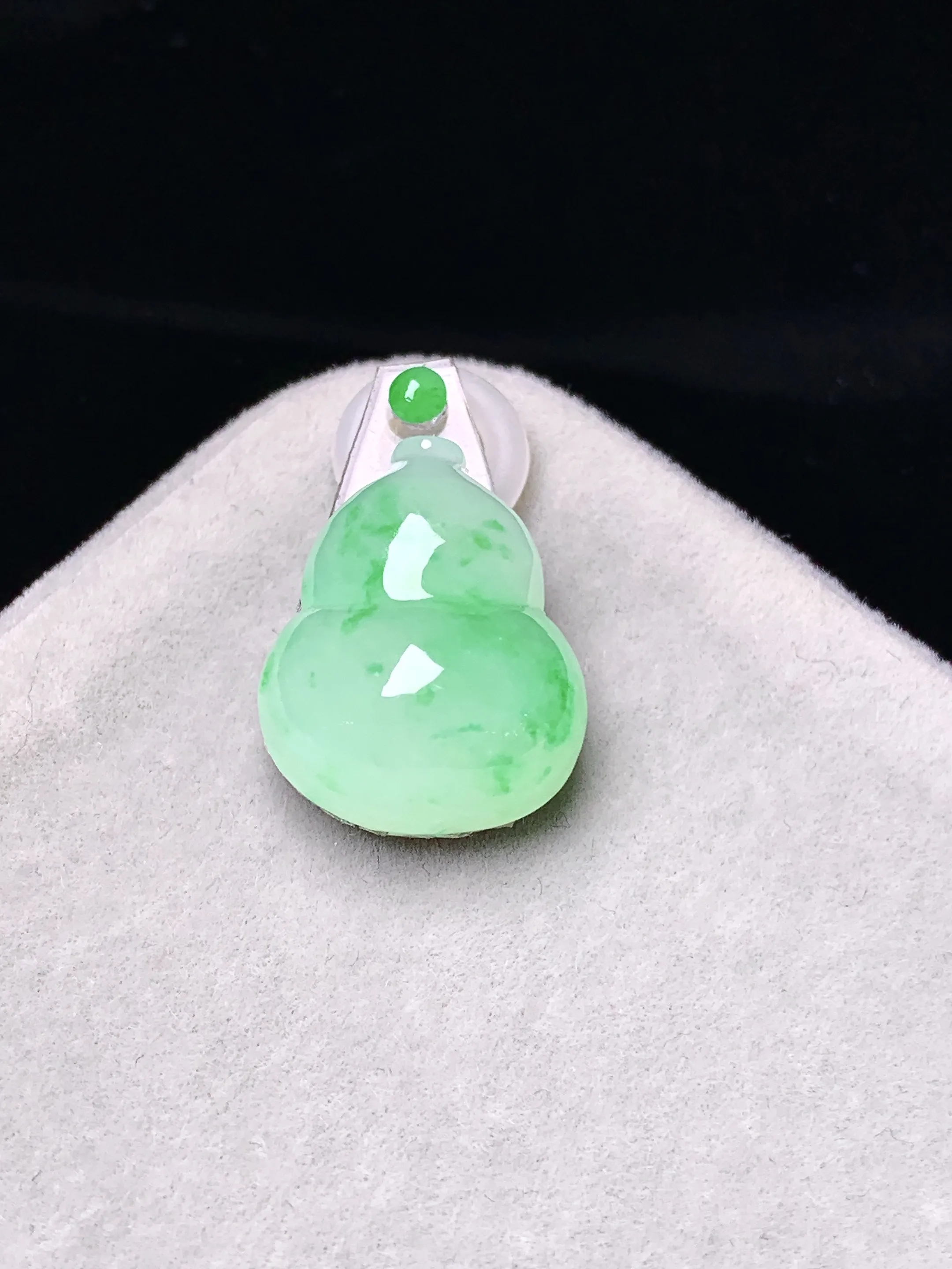 镶嵌款 翠绿葫芦吊坠 玉质细腻 色泽清新艳丽 整体尺寸17.6*14*7.2