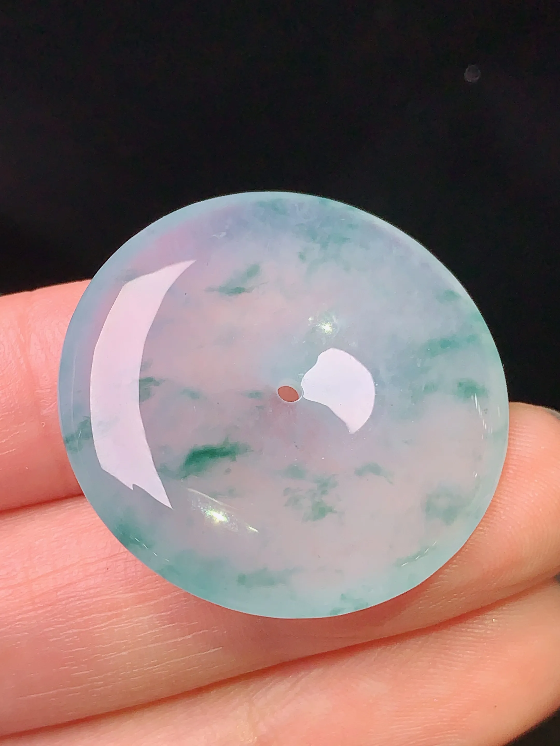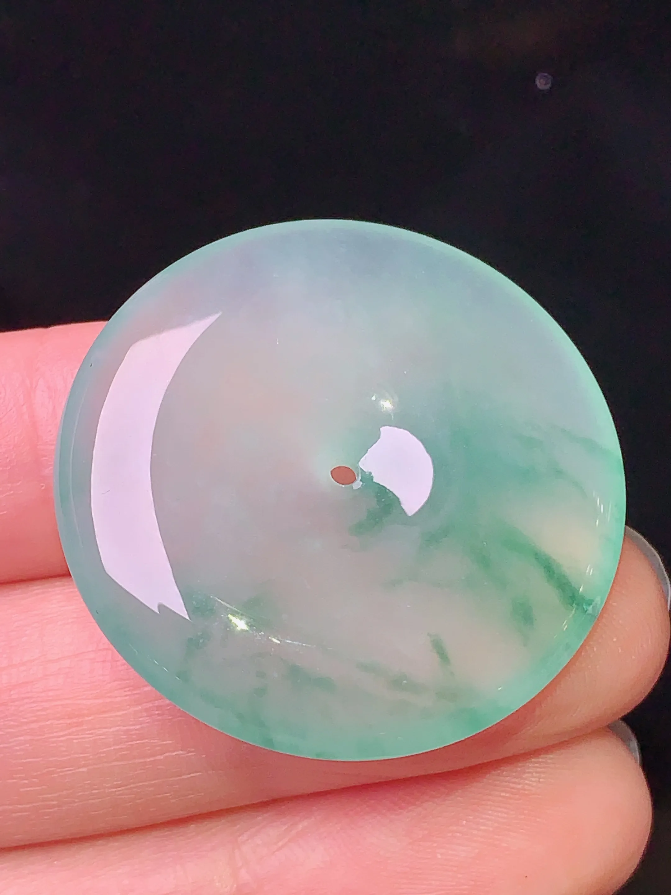冰种飘绿平安扣吊坠 玉质细腻 色泽清新艳丽 整体尺寸29.3*5.7