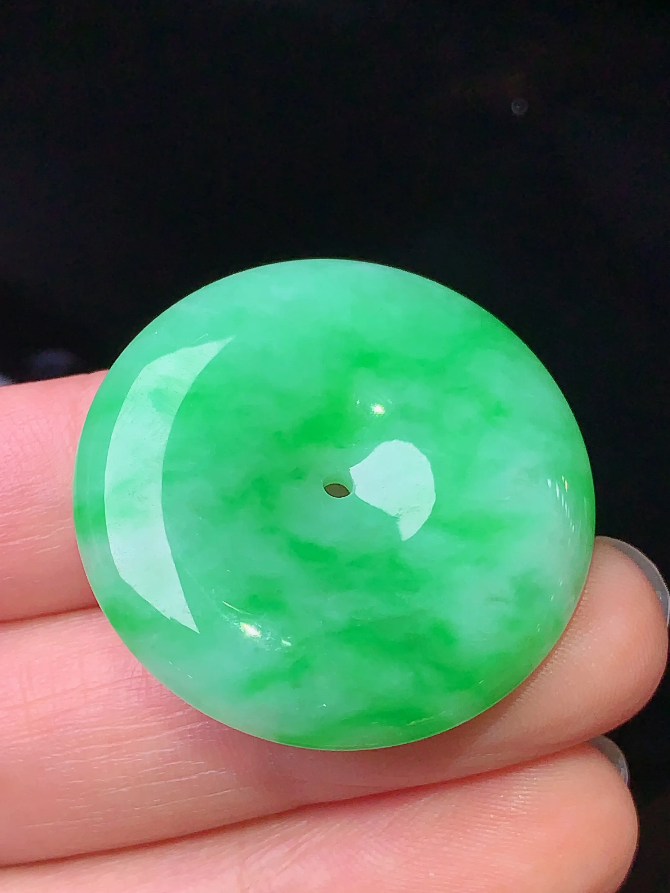 翠绿平安扣吊坠 玉质细腻 色泽清新艳丽 整体尺寸30.6*6