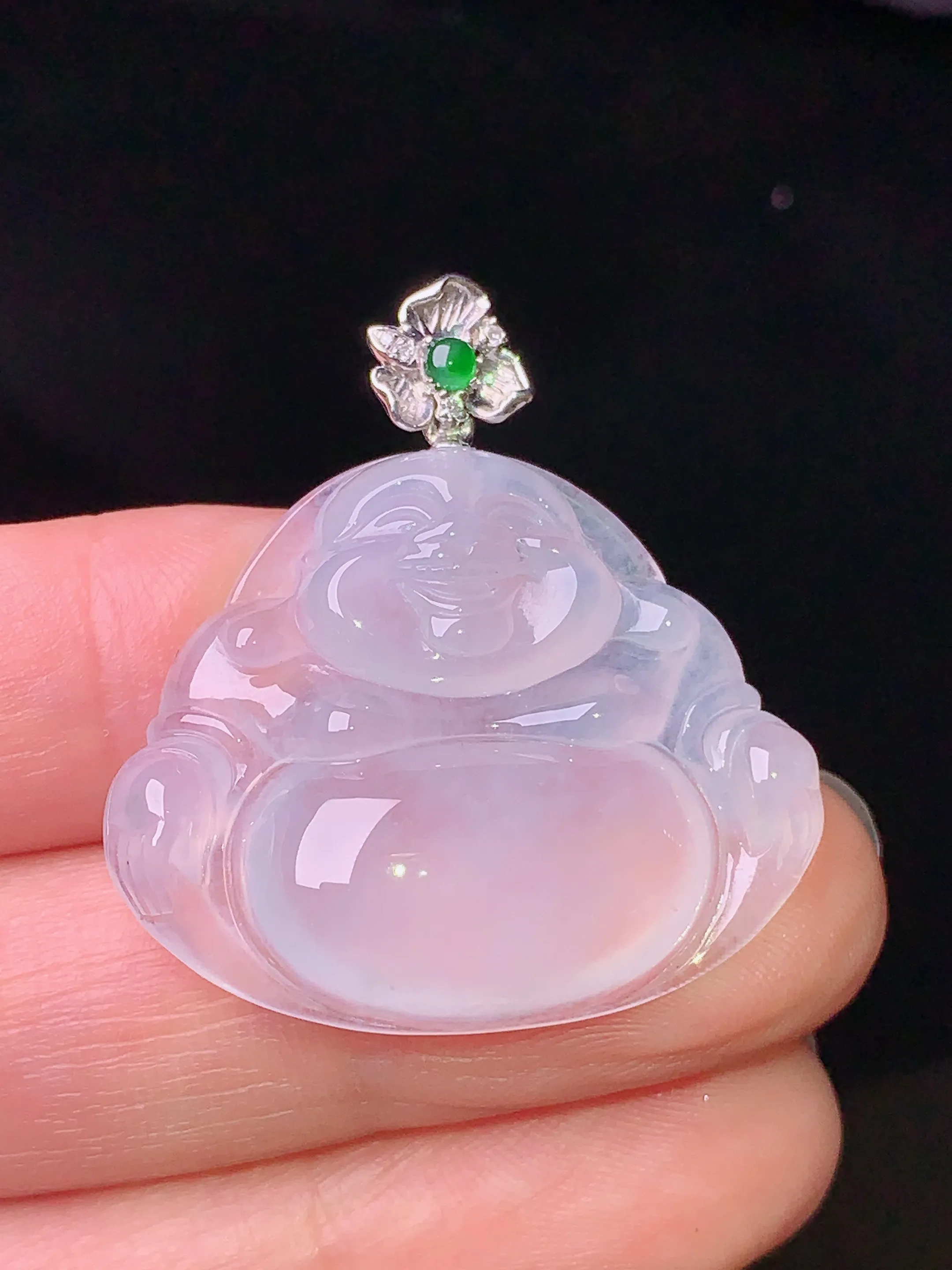 18k金钻镶嵌冰种佛公吊坠 玉质细腻 色泽清新艳丽 整体尺寸33*30.2*6