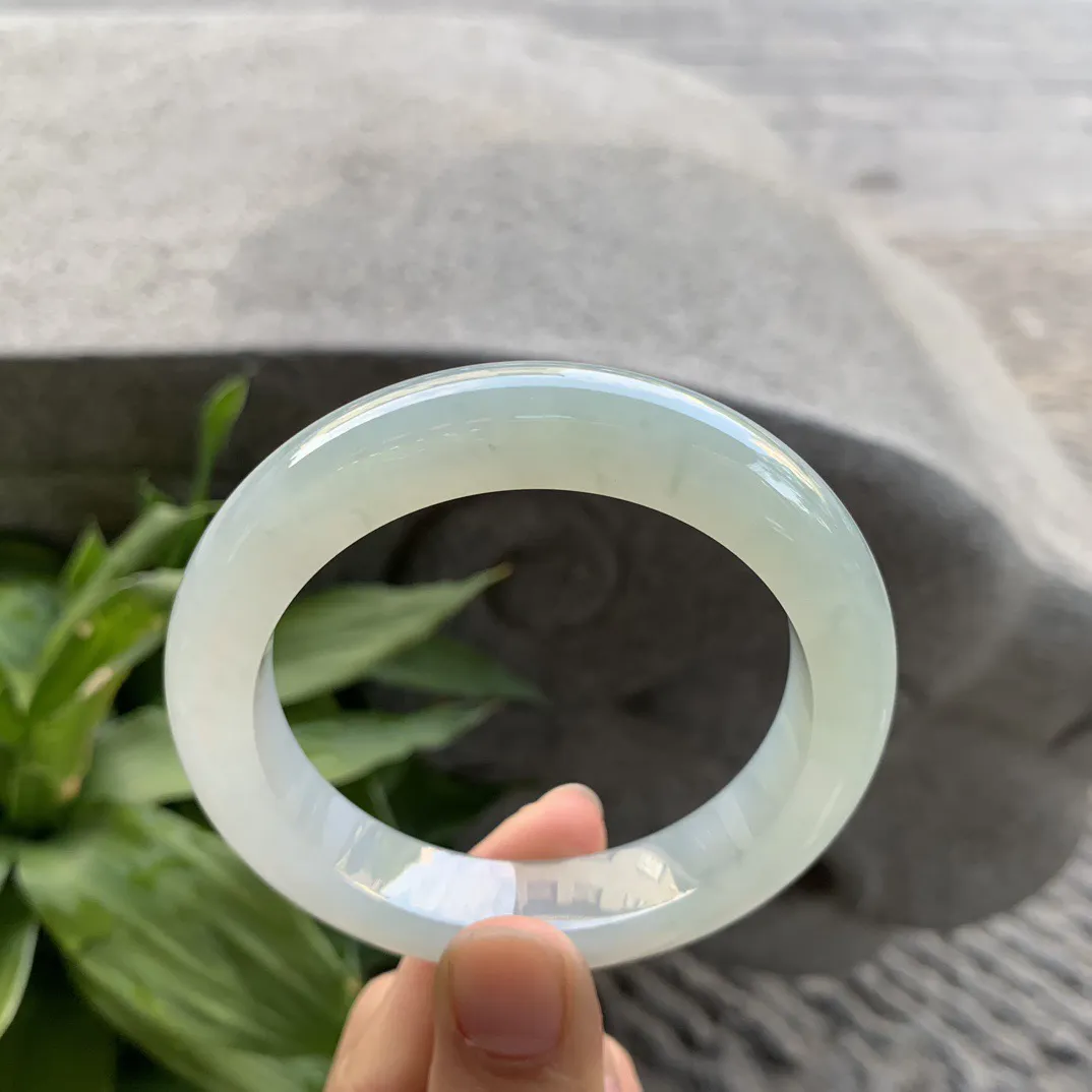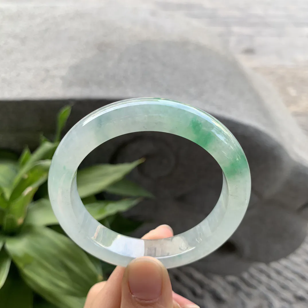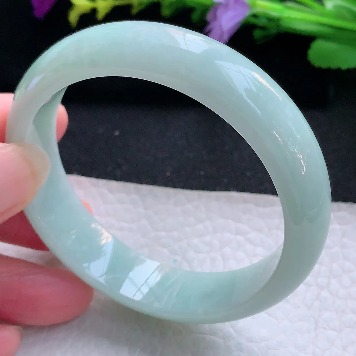 【超低价放漏】圈口:58.7mm 天然翡翠自然光实拍 底子细腻油润阳绿宽边手镯 上手大气