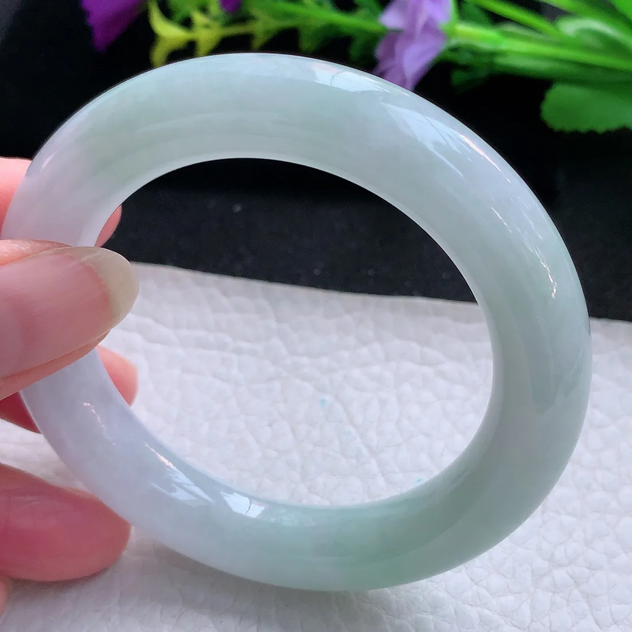 【翡翠名称】老种冰飘绿春彩54.3圈口圆条手镯 【翡翠尺寸】适合55-56正圈口佩戴 【翡翠描述】宝