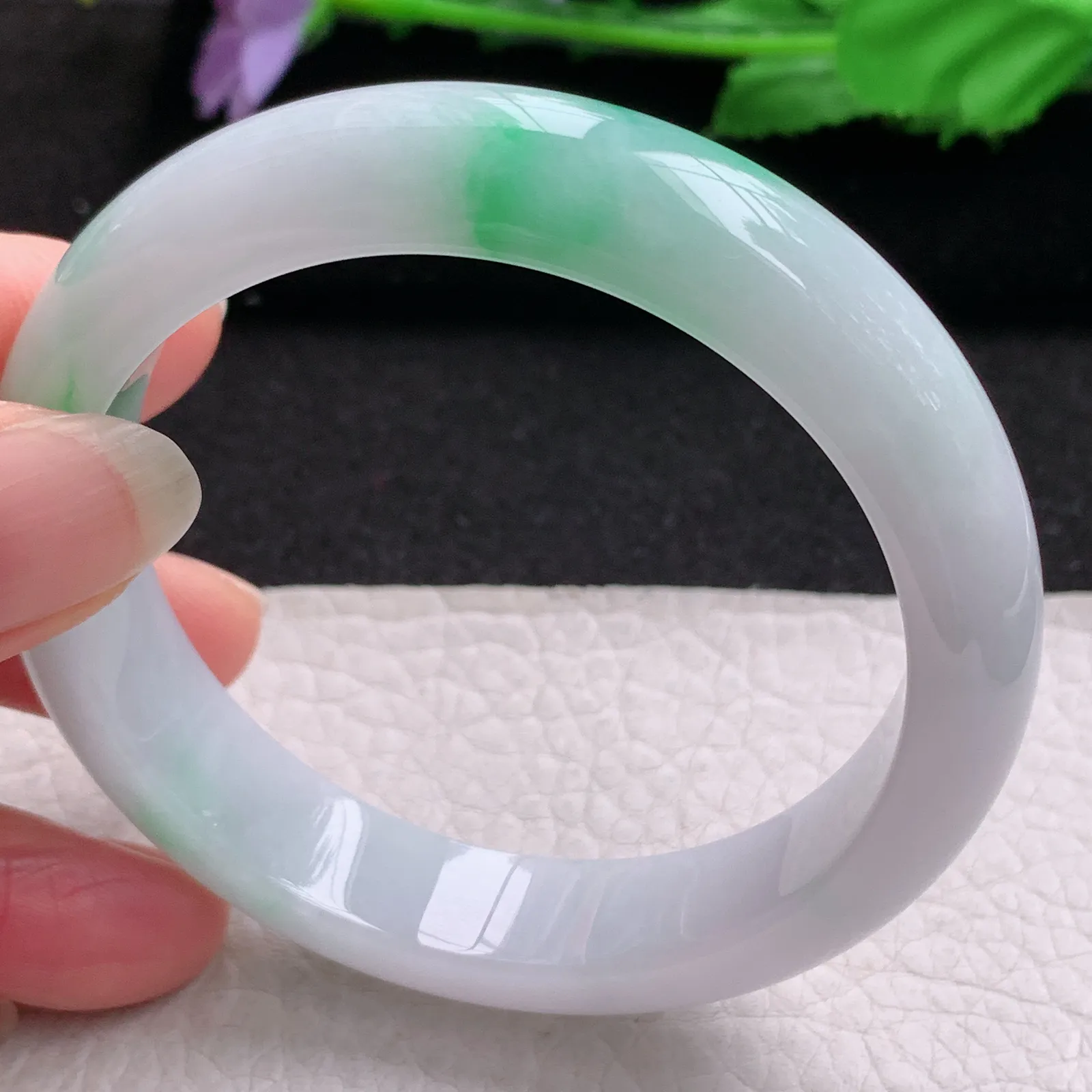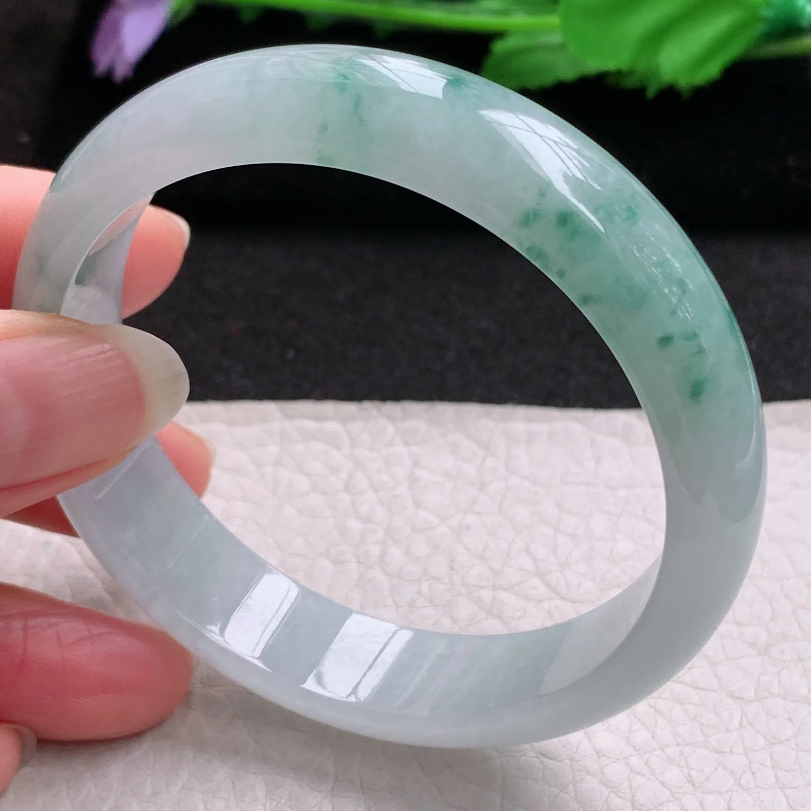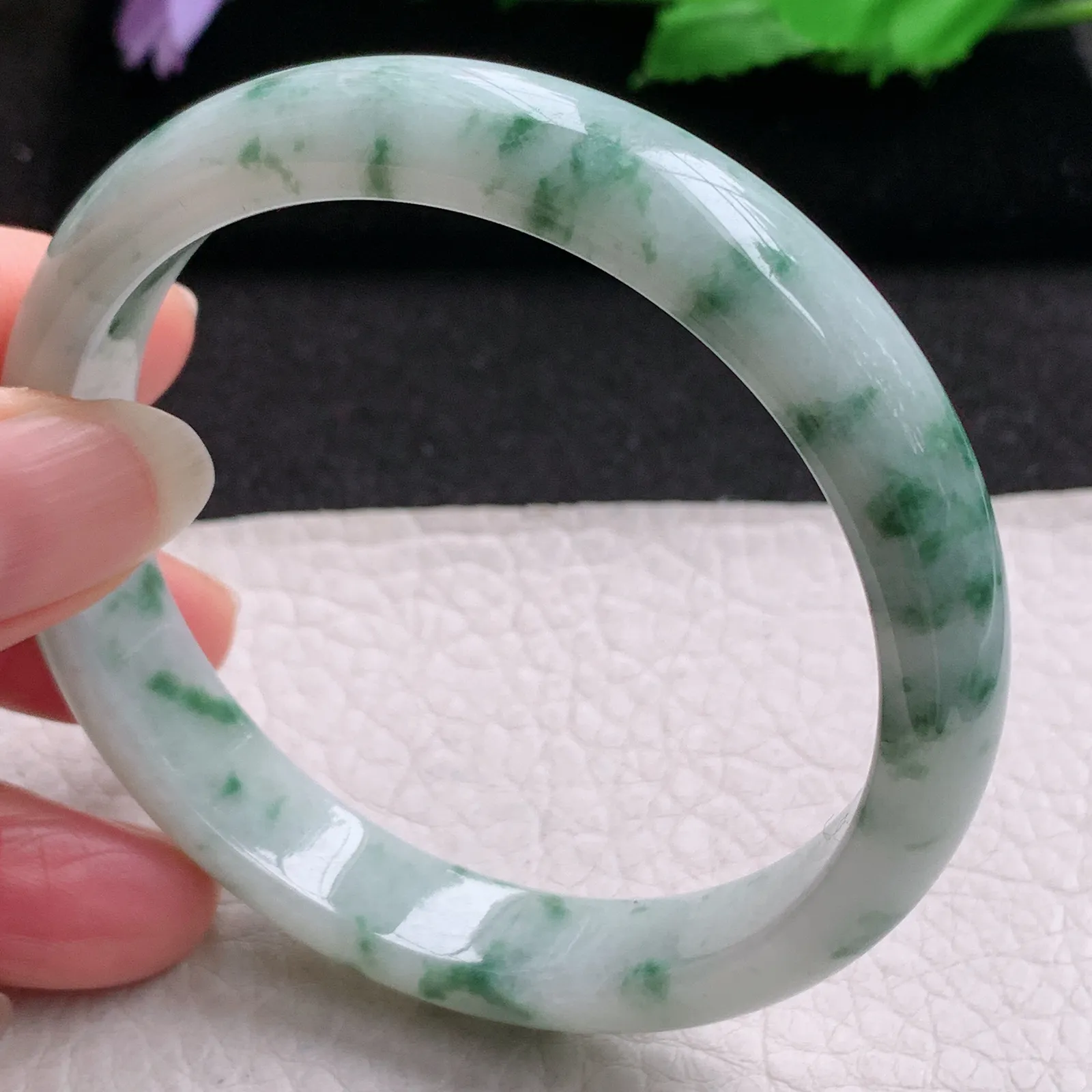 js实拍57.5*14*7平安镯 缅甸翡翠a货精美冰飘花宽边玉手镯 玉手环