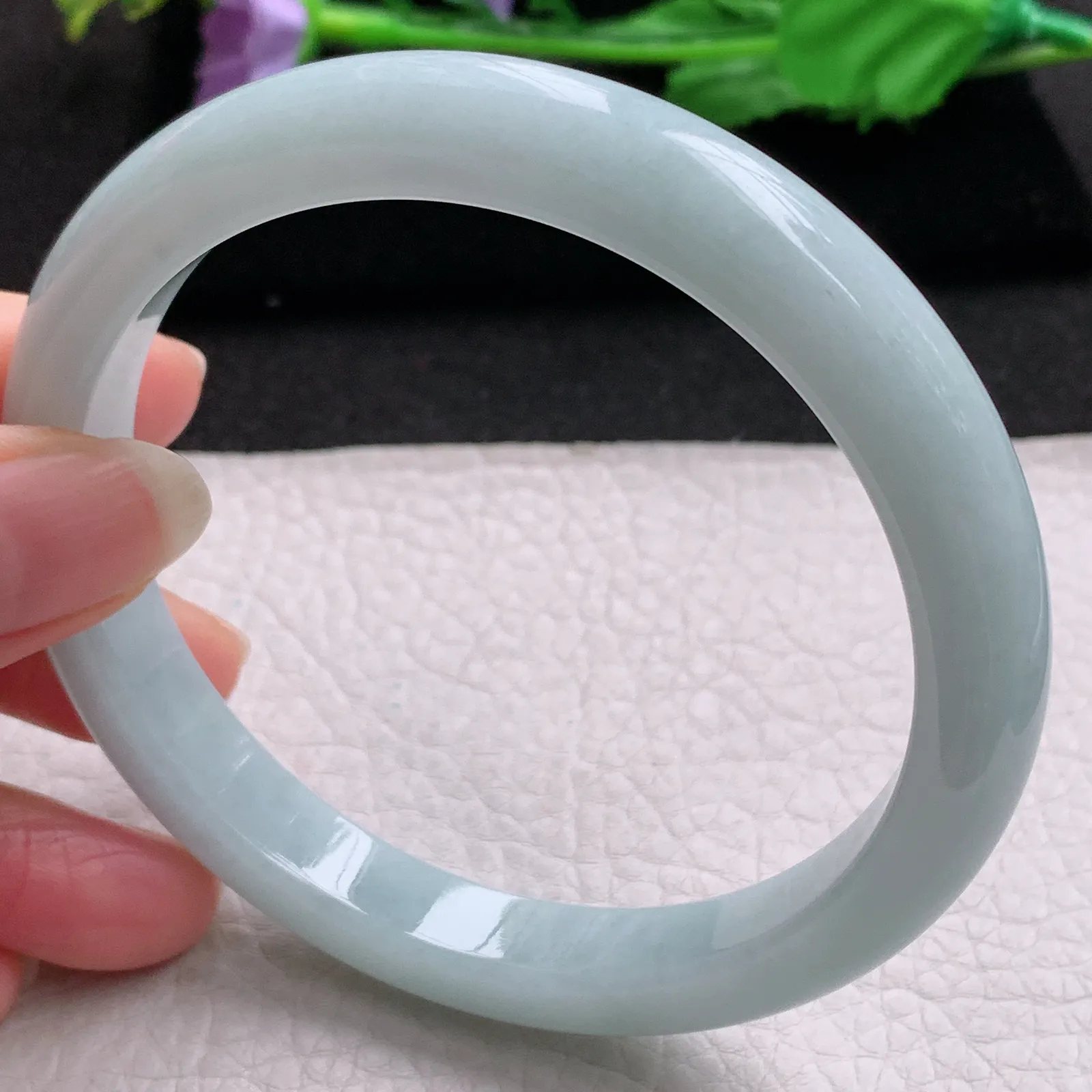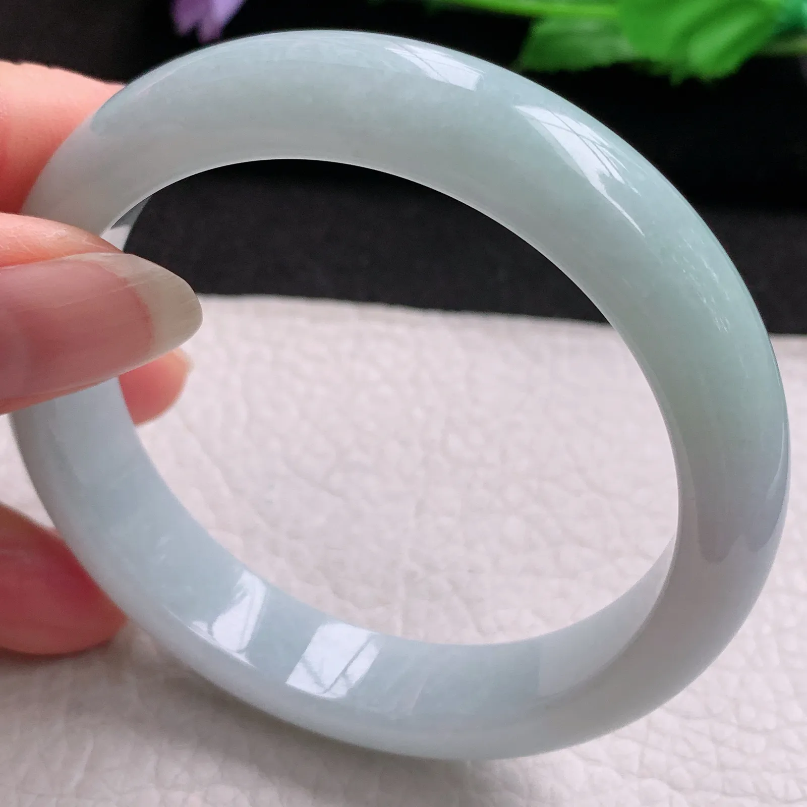js大圈口66*10.6*8.5平安镯 缅甸翡翠a货精美白月光宽边玉手镯 玉手环