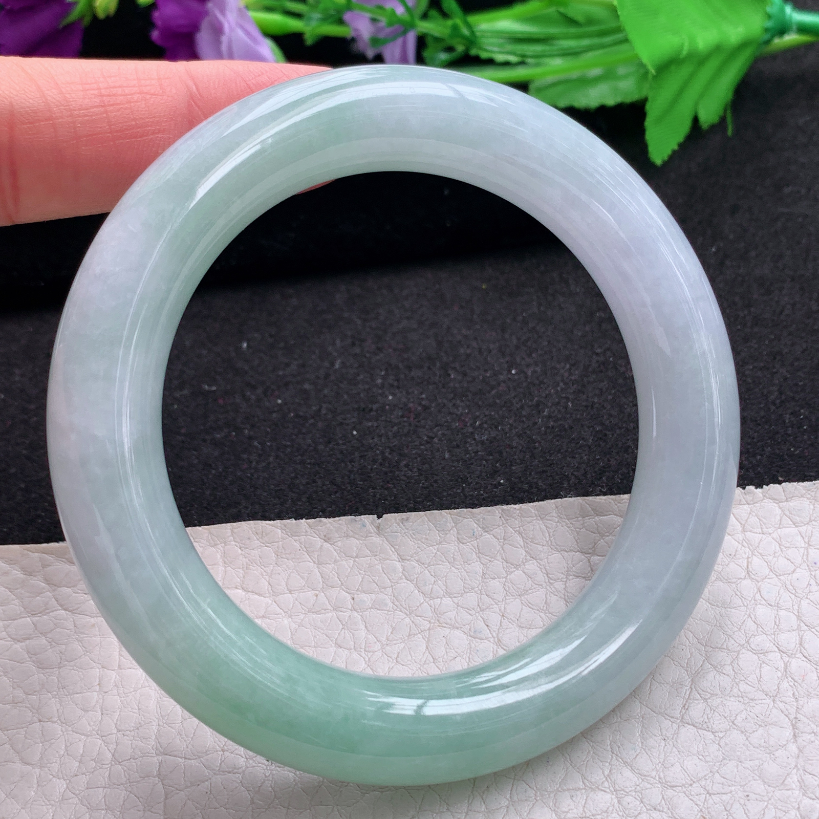 hy实拍57.8*12胖圆镯 天然缅甸翡翠A货手镯胶润清新飘绿圆条正圈玉手环