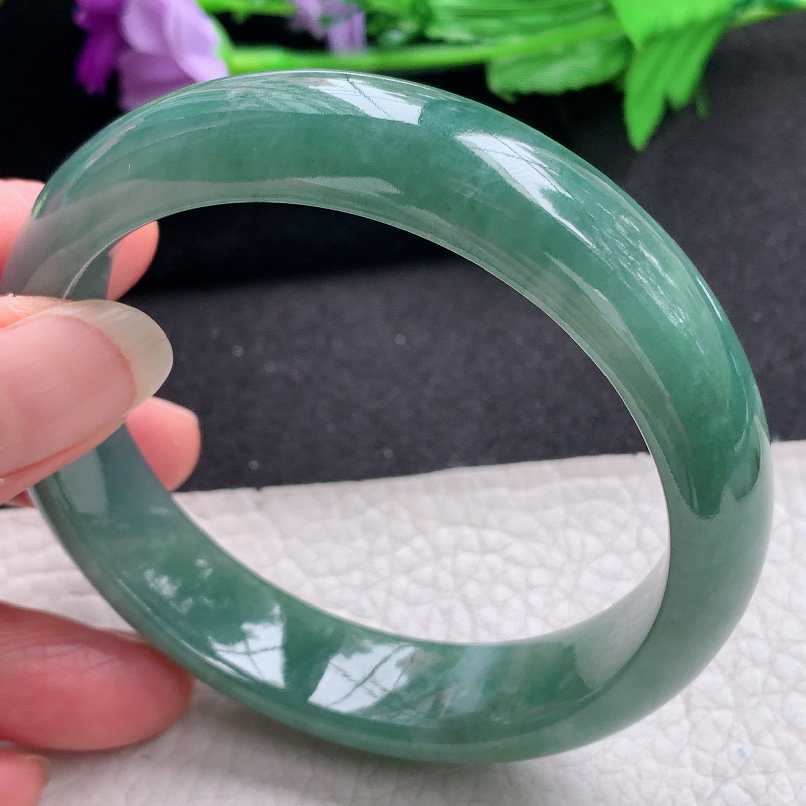 圈口 55-12.4-8.7【满飘绿正圈手镯】正圈55 56可戴