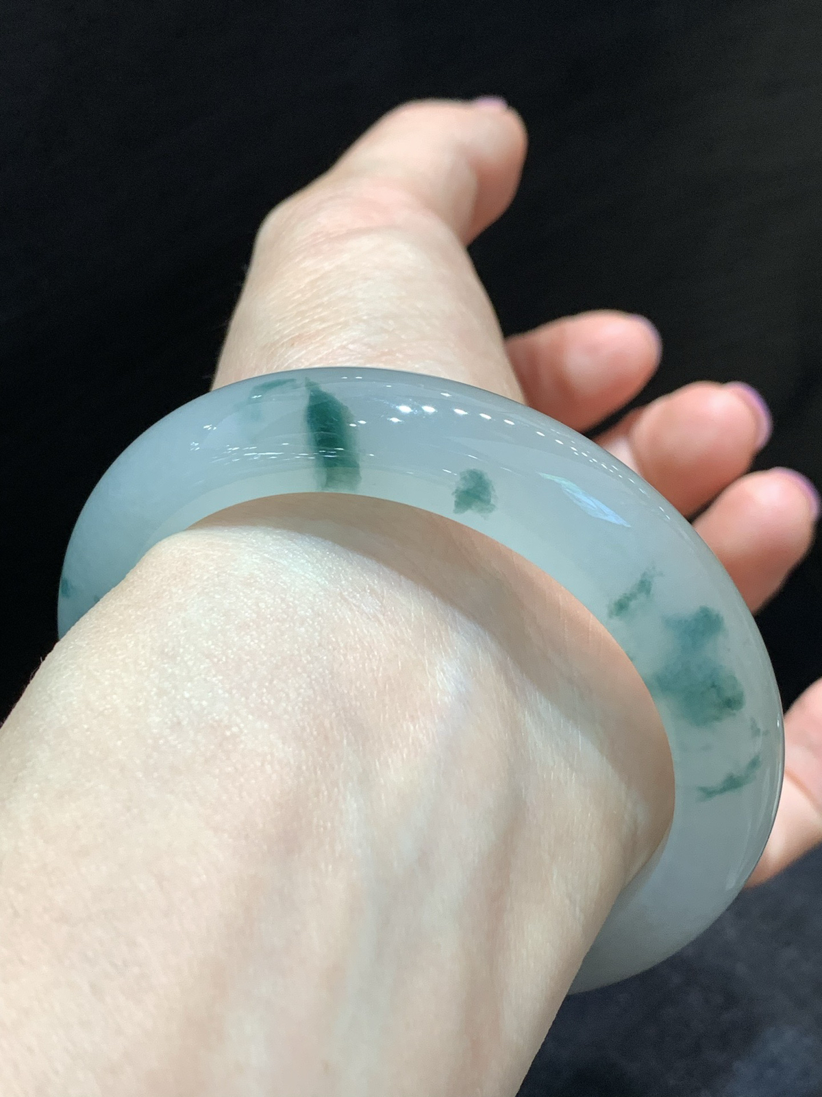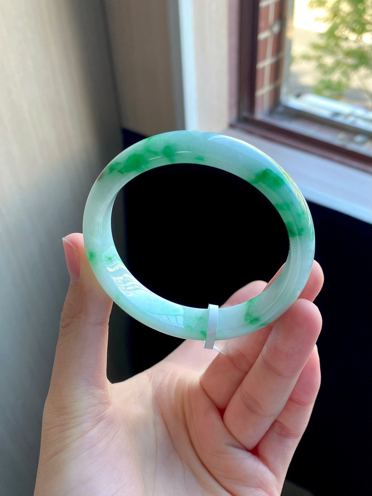 阳绿白底青正圈成品( 细纹不显不扣) ⭕️57.5-12.8-7.4
