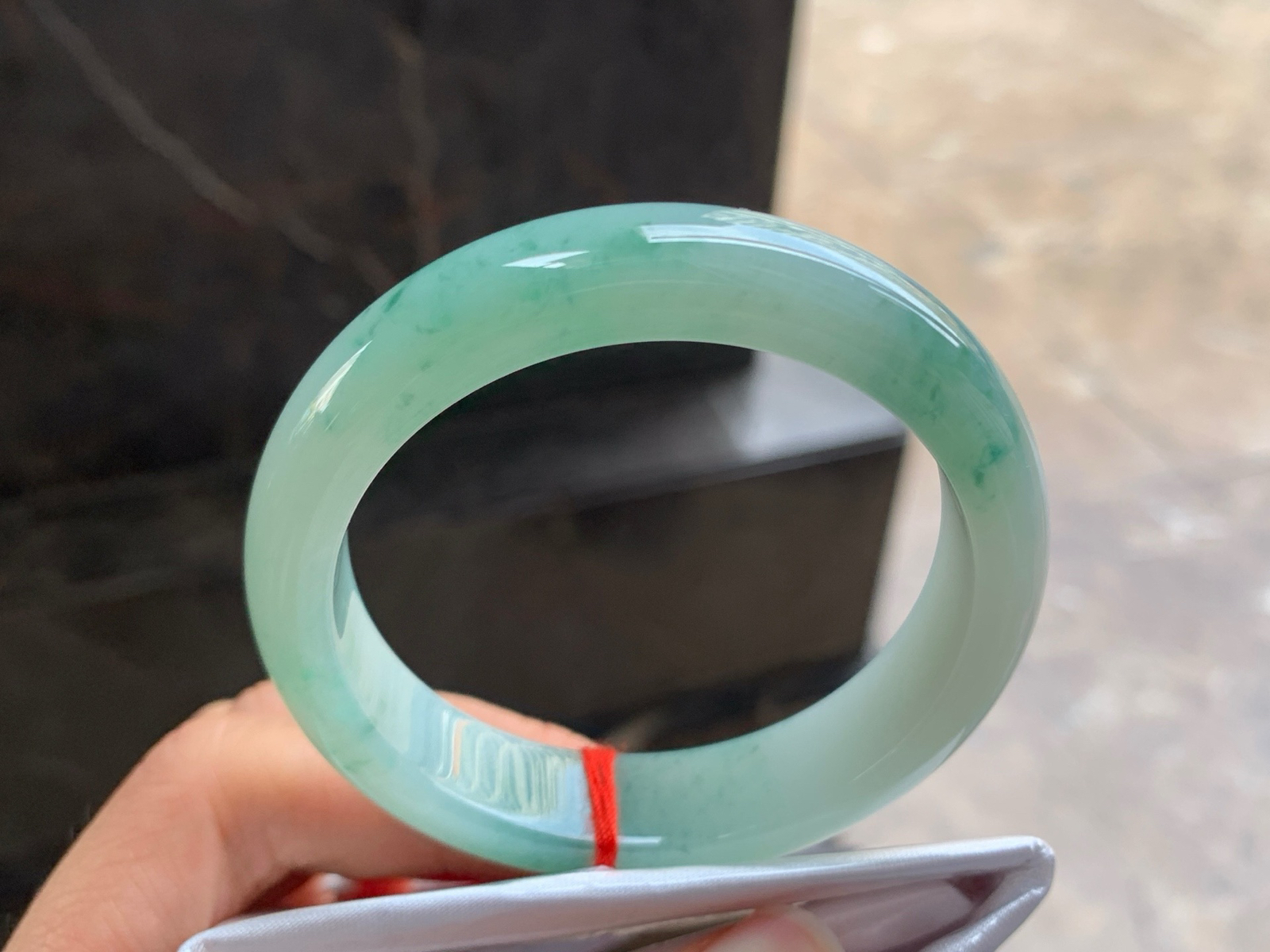 实拍A货翡翠56/13.2/8.2老坑秀气温润浅绿色手镯玉镯手环