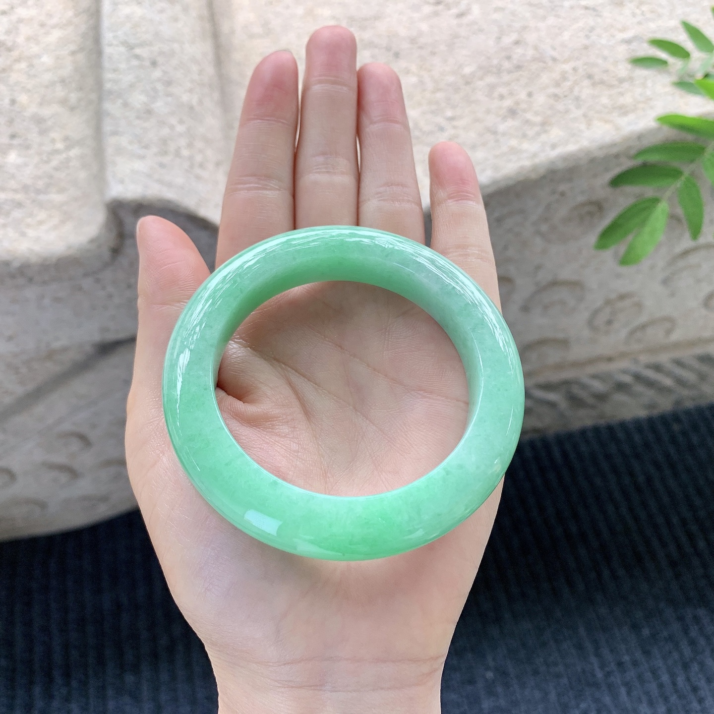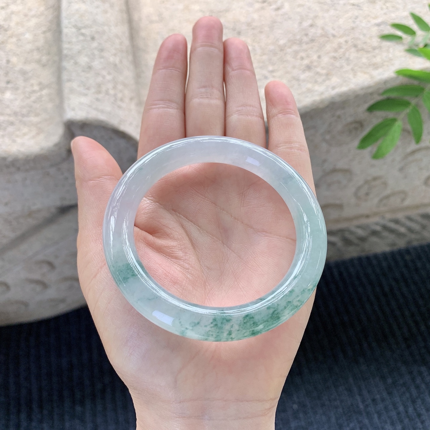 圆条54 55【圈口】55.7/10.5/10.2【】喜询【编码】HT120502【描述】冰种飘绿,